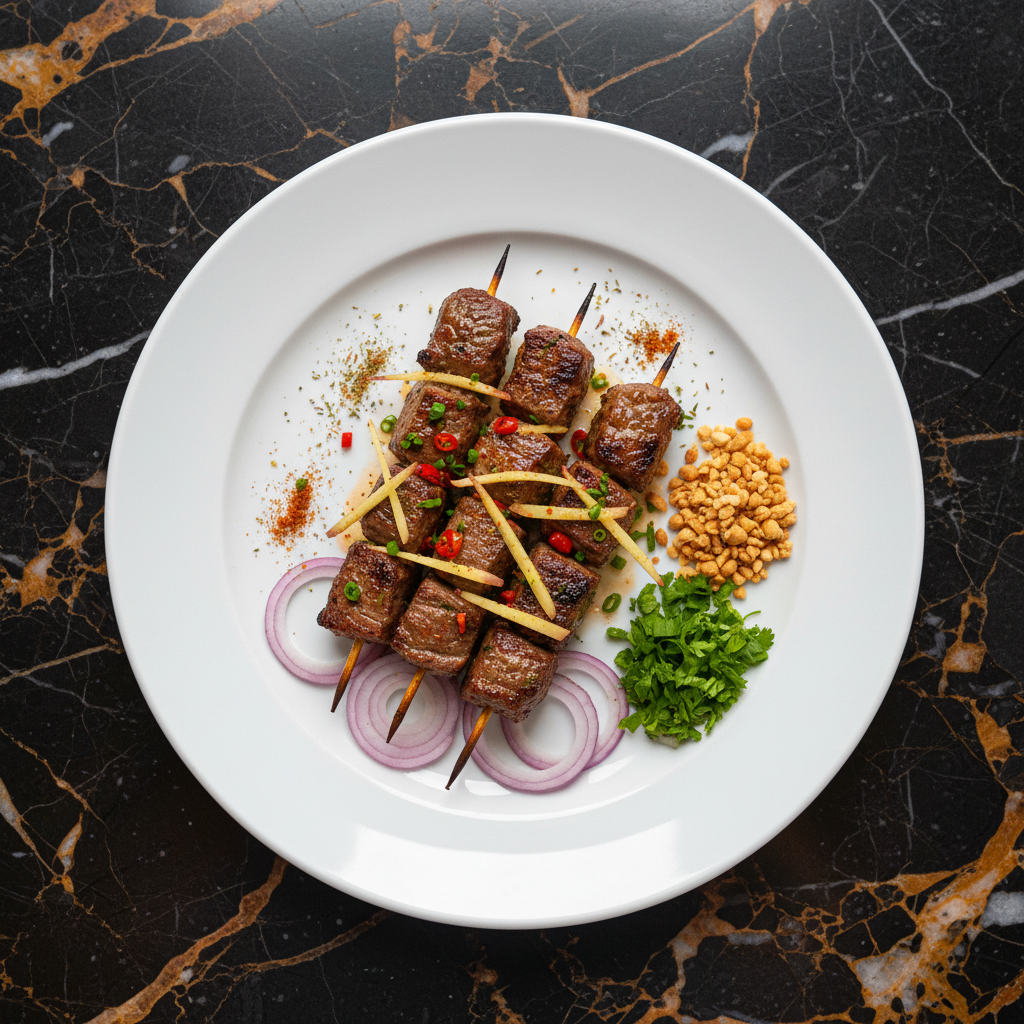 Marinated beef skewers grilled to perfection, featuring a blend of local spices and often served with a side of rice or a simple salad.