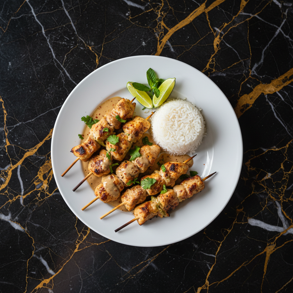 Tender chicken pieces marinated in coconut milk and spices, then grilled to perfection on skewers. A flavorful and aromatic dish often enjoyed during celebrations.