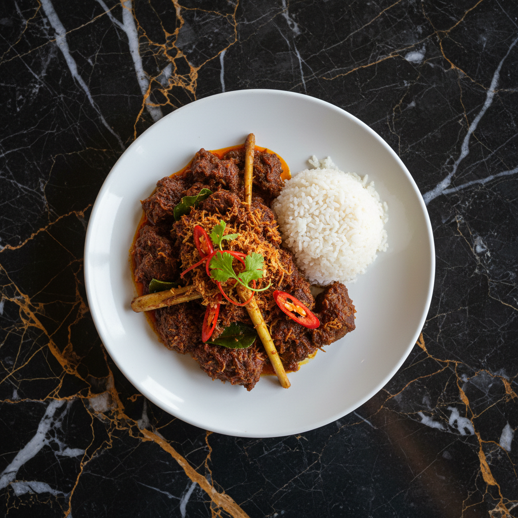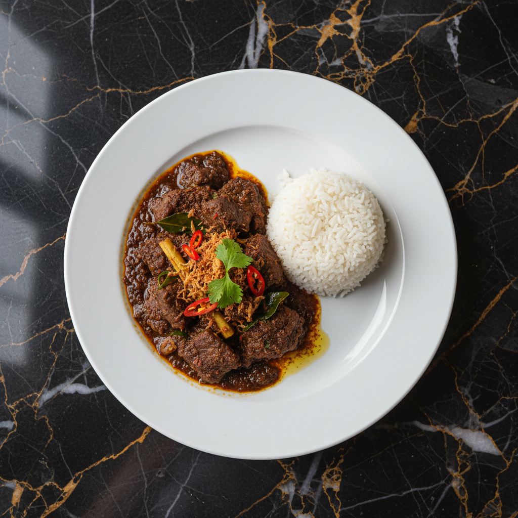 A rich and aromatic slow-cooked beef dish, Rendang Padang is a celebrated Indonesian dish that has found a beloved place in Bruneian cuisine. Tender chunks of beef are simmered in a complex blend of coconut milk and a fragrant paste of chilies, ginger, galangal, lemongrass, and other spices until the liquid is absorbed and the beef is incredibly tender and caramelized. It's a labor of love that results in an unforgettable depth of flavor.