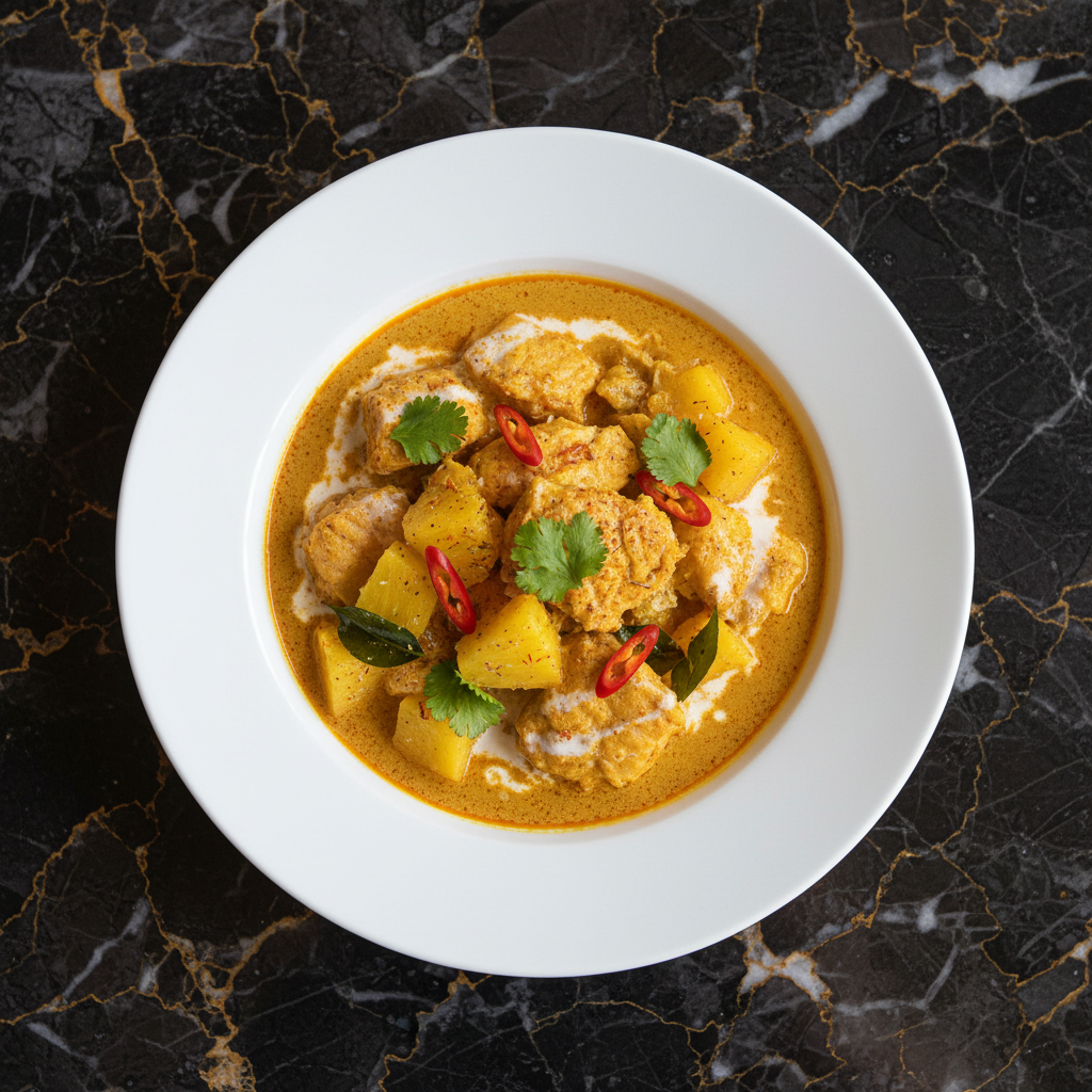 A vibrant and flavorful fish curry that balances the richness of coconut milk with the sweet and tangy notes of pineapple. Tender pieces of fish are simmered in a fragrant curry base infused with turmeric, chilies, and aromatic spices, with chunks of pineapple adding a delightful tropical twist. This dish is a testament to Brunei's coastal influences and love for sweet and savory combinations.