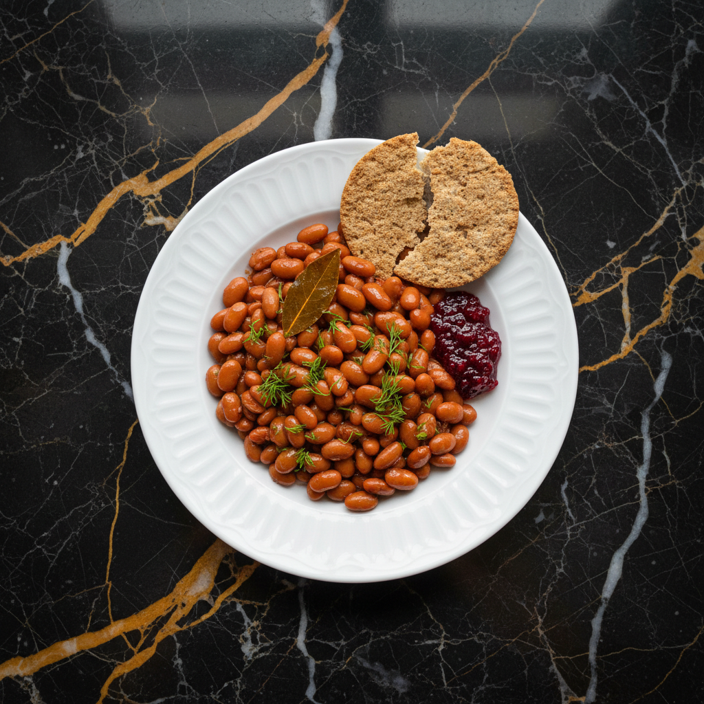 A classic Swedish sweet and sour side dish made from tender brown beans, simmered in a rich syrup and vinegar sauce. Traditionally served with pork dishes.