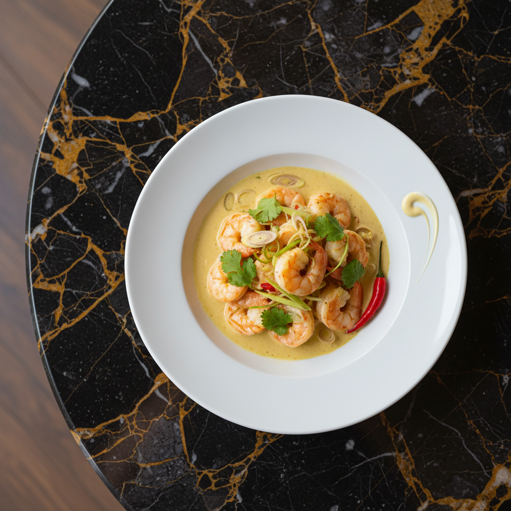 A succulent dish featuring plump prawns cooked in a fragrant and creamy sauce infused with lemongrass, chili, and coconut milk. This dish balances the sweetness of the prawns with the aromatic zest of lemongrass and a gentle kick of spice, making it a delightful seafood option representative of Brunei's coastal influences.