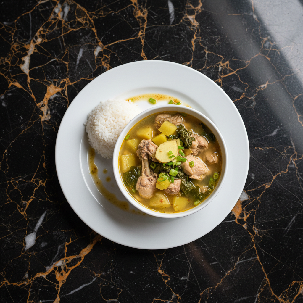 A comforting and healthy Filipino chicken soup, known for its aromatic ginger broth and tender chicken, often enhanced with green papaya and leafy greens.