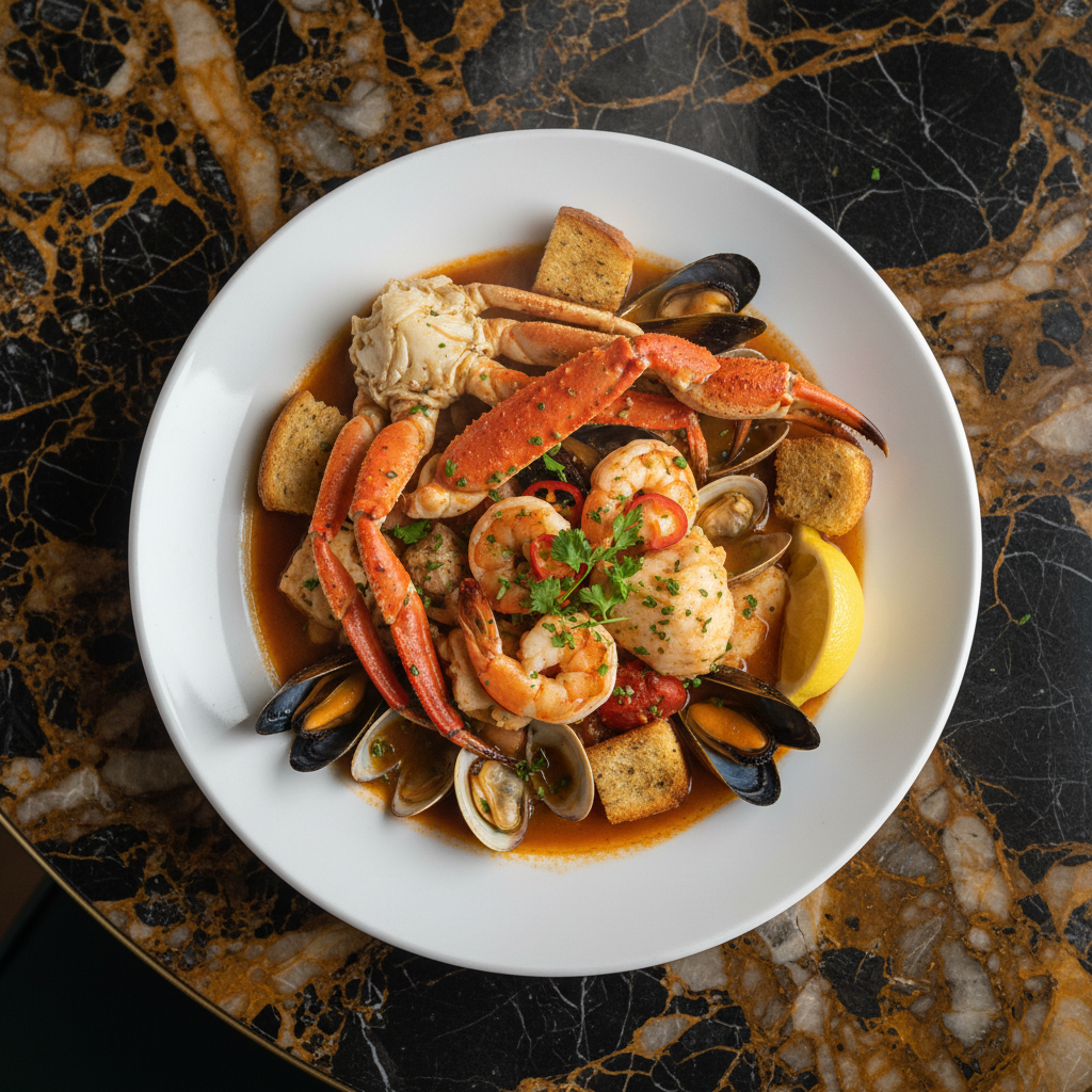 A hearty and flavorful Italian-American seafood stew originating from San Francisco. Dungeness crab, clams, mussels, and shrimp simmer in a rich, aromatic tomato and wine broth. Perfect for dipping crusty bread.