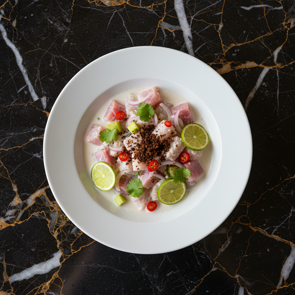 A refreshing and simple dish of raw fish marinated in lime juice, coconut milk, and local seasonings, often served as a side or light meal.