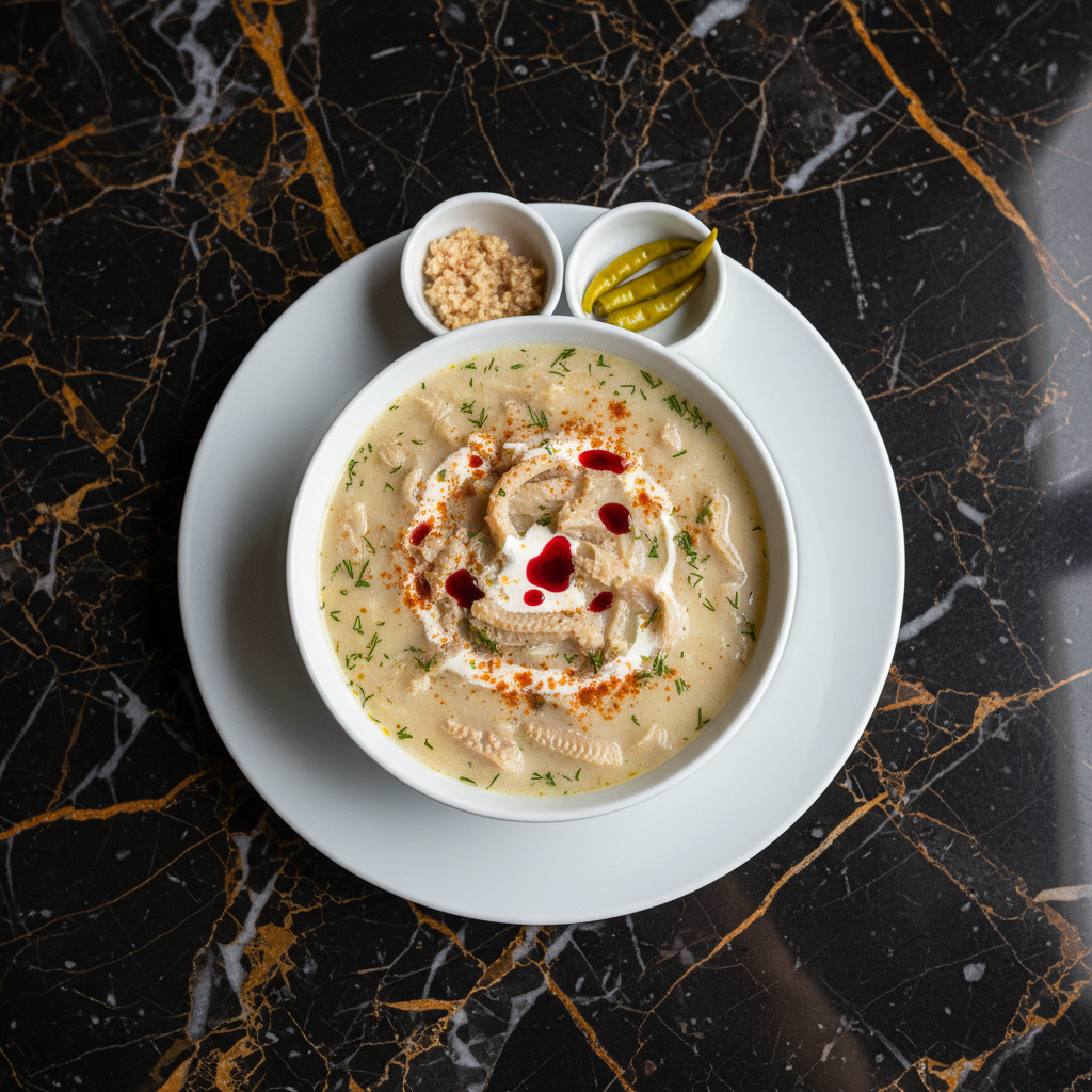 A rich and creamy Romanian tripe soup, renowned for its tender tripe, pungent garlic, and tangy vinegar. Traditionally considered a potent hangover cure, this soup is a beloved comfort food across the Balkans.