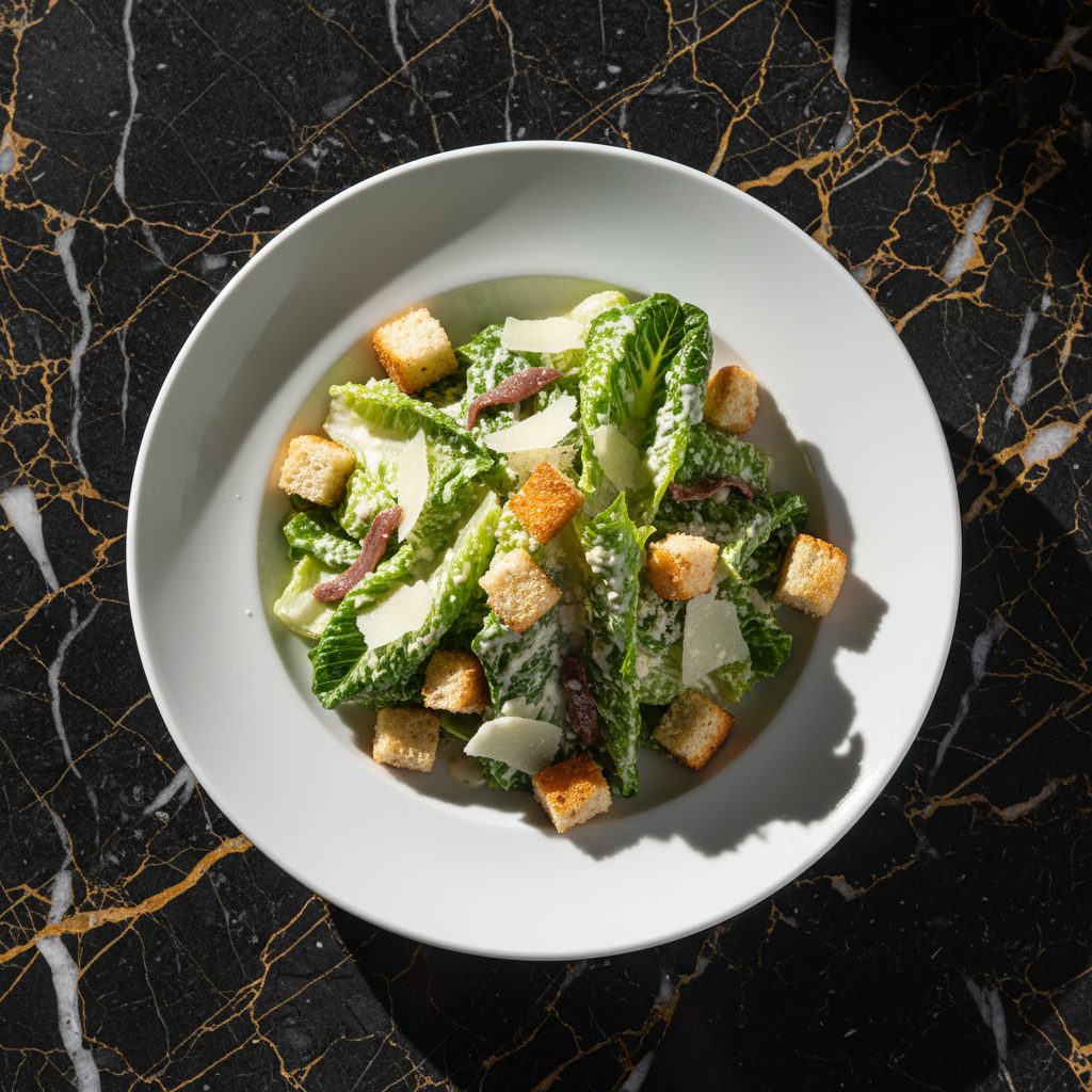 A timeless American classic featuring crisp romaine lettuce, crunchy croutons, sharp Parmesan cheese, and a rich, tangy Caesar dressing made with anchovies, garlic, and egg yolk. Originally created in Tijuana, Mexico, this salad has become a beloved staple in American cuisine.