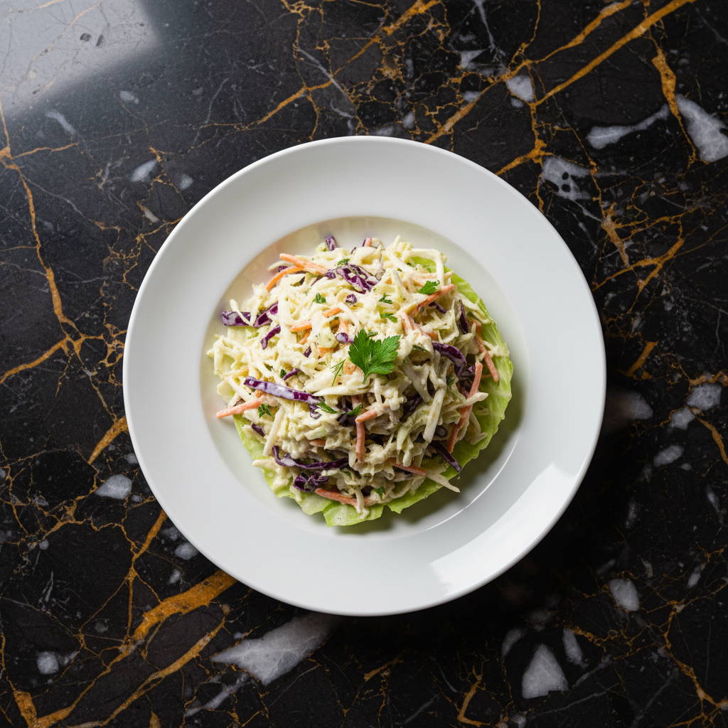 A quintessential American BBQ side dish, this creamy coleslaw features crisp shredded cabbage and carrots tossed in a tangy, slightly sweet mayonnaise-based dressing. It's best served chilled to allow the flavors to meld.