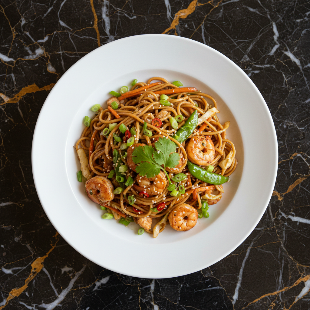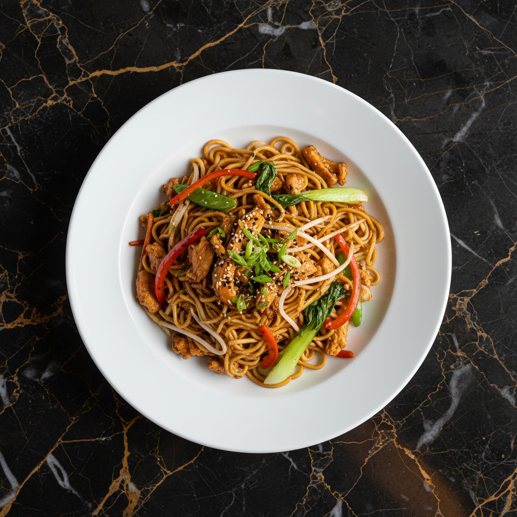 A beloved Chinese stir-fried noodle dish featuring tender noodles, crisp-tender vegetables, and your choice of protein, all coated in a savory sauce. Perfect for a quick and satisfying meal.
