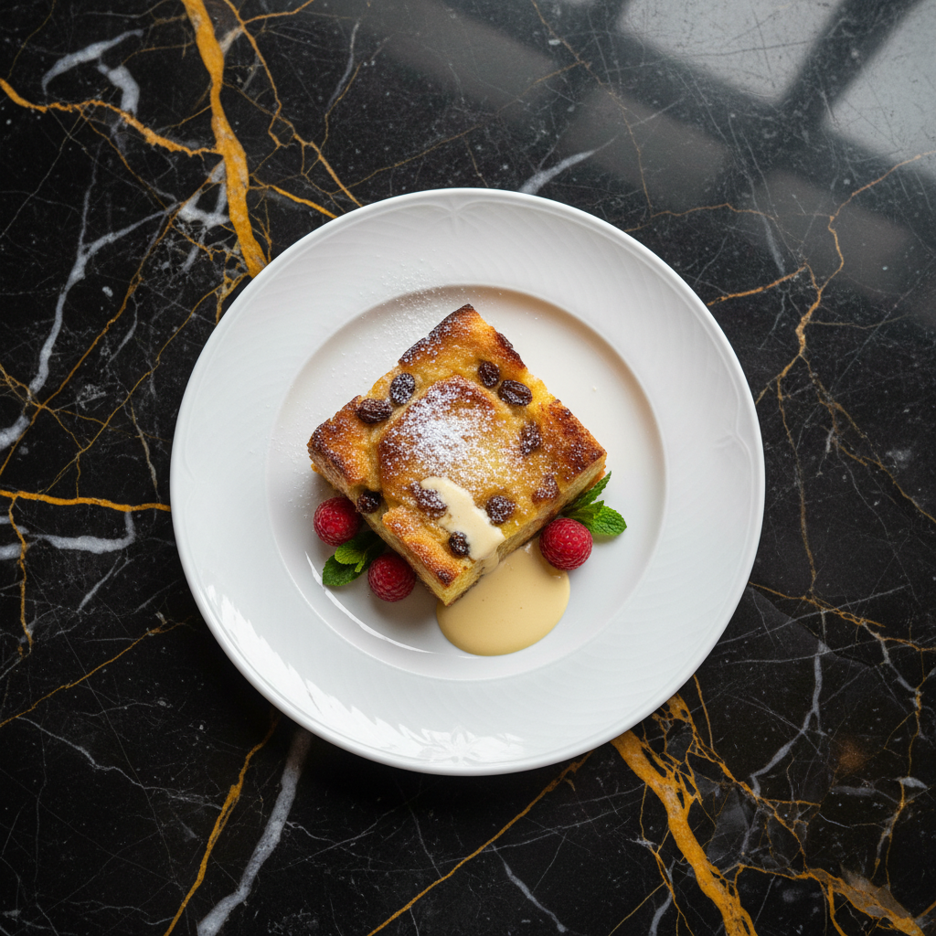 A comforting and classic British dessert made from custard-soaked bread, baked until golden and delicious. Perfect for using up stale bread.