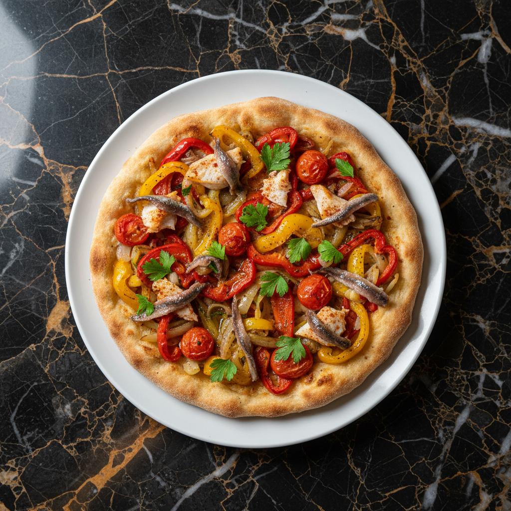 Coques de Recapte are savory Andorran flatbreads, similar to a rustic pizza or focaccia. They feature a simple dough base topped with a colorful medley of roasted vegetables like peppers, onions, and tomatoes, often with added anchovies or smoked fish. 'Recapte' means provisions, hinting at its origins as a portable meal.