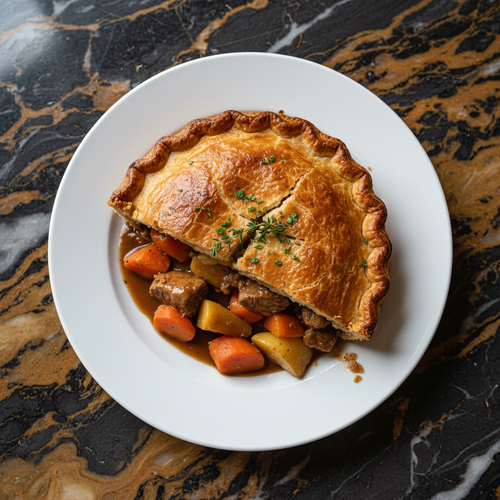 A hearty and flavorful pie featuring tender lamb shoulder slow-cooked with a medley of root vegetables in a rich, savory gravy, topped with a golden, flaky pastry crust. This dish draws inspiration from the robust culinary traditions of County Cork.