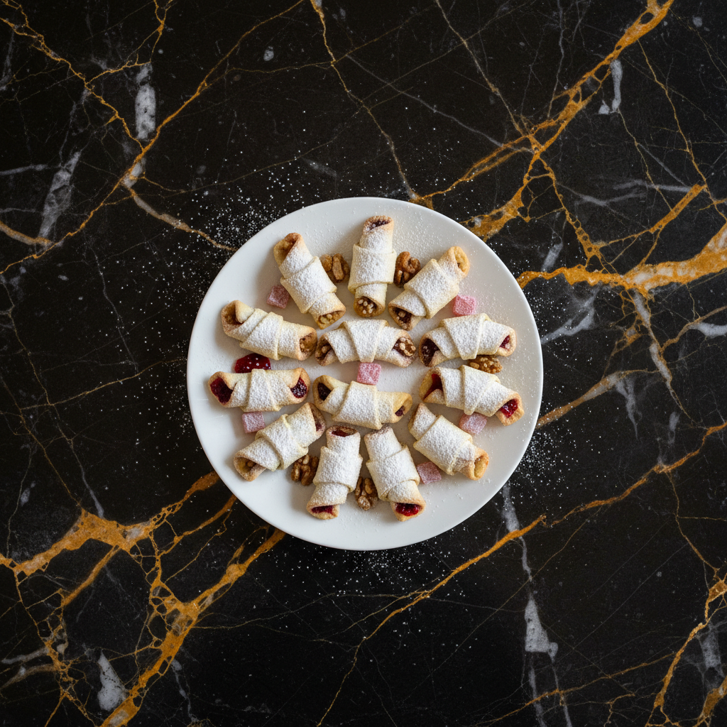 Cornuleศe are traditional Romanian crescent-shaped cookies, often filled with fruit jam, walnuts, or Turkish delight. They are buttery, tender, and melt-in-your-mouth, perfect for holidays and special occasions.