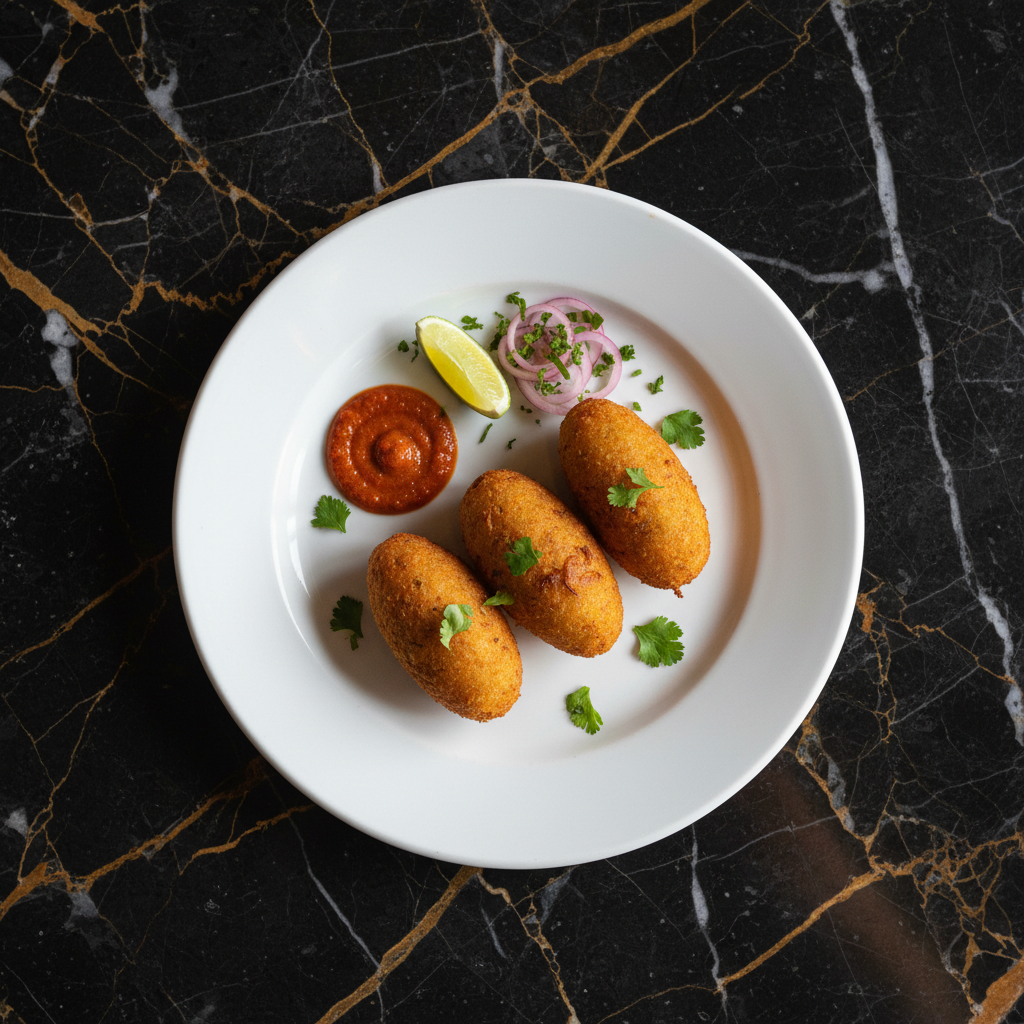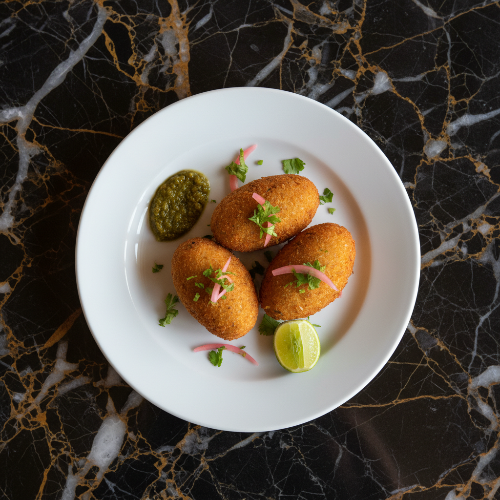Corviche is a popular Ecuadorian coastal appetizer, especially from Manabรญ. It's made from a dough of green plantains and ground peanuts, filled with seasoned fish (or sometimes shrimp or cheese), then deep-fried until golden brown and crispy. It's often served with a spicy aji sauce.