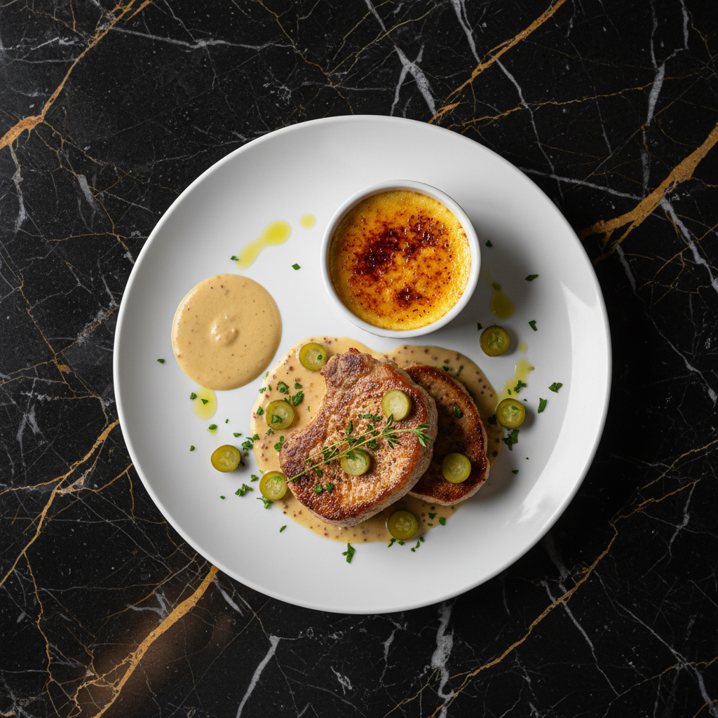 A delightful and creamy dessert, similar to crรจme brรปlรฉe but with a distinct local character, often infused with citrus zest and served with a caramelized sugar crust.