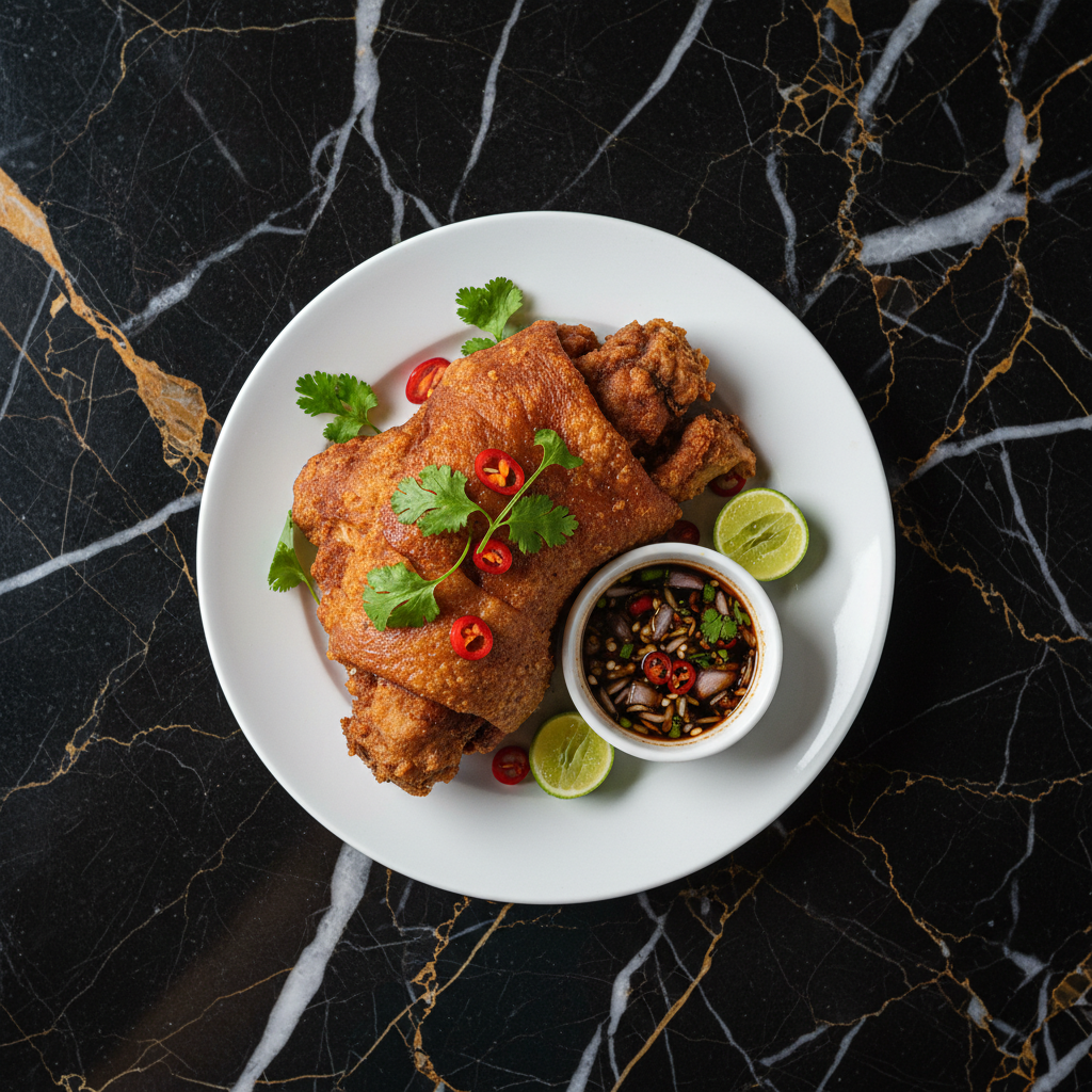 A beloved Filipino celebration dish, Crispy Pata features a whole pork leg (trotter) that is first braised until tender, then deep-fried to achieve an incredibly crispy, golden-brown skin and succulent meat. It's a showstopper that's perfect for special occasions.