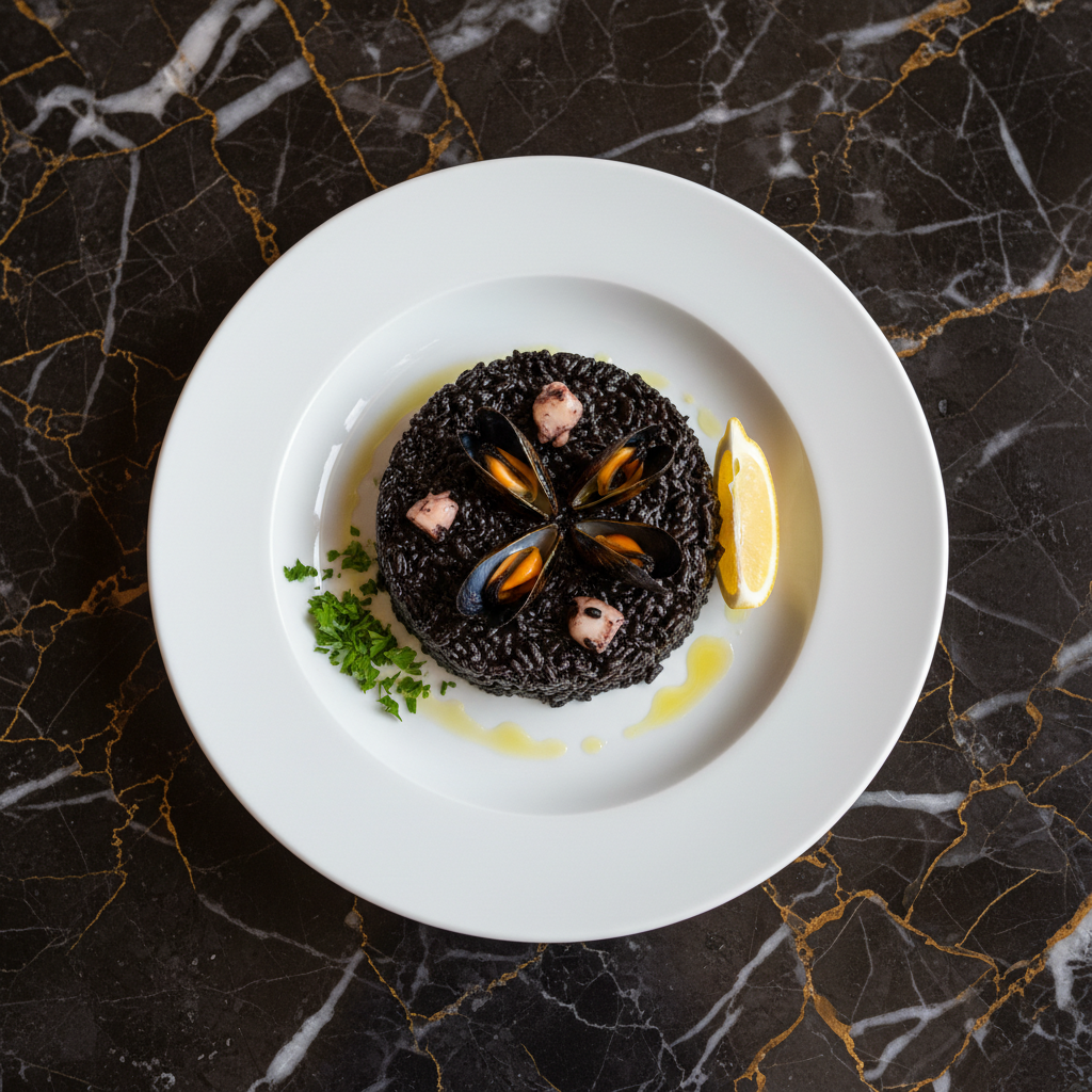 A striking and flavorful seafood risotto made with squid ink, giving it its characteristic black color and rich, oceanic taste. This dish is a beloved classic along the Croatian coast.