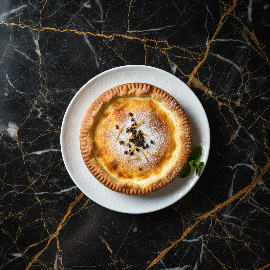 A classic Italian ricotta tart featuring a sweet, creamy ricotta filling infused with citrus zest and studded with chocolate chips, all encased in a rustic shortcrust pastry (pasta frolla). This dessert is a delightful treat, often enjoyed during holidays like Easter.