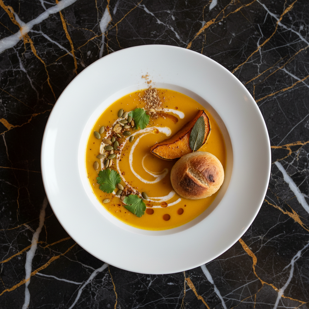 A rich and creamy butternut squash soup, subtly spiced with fresh ginger. Perfect for a comforting meal.