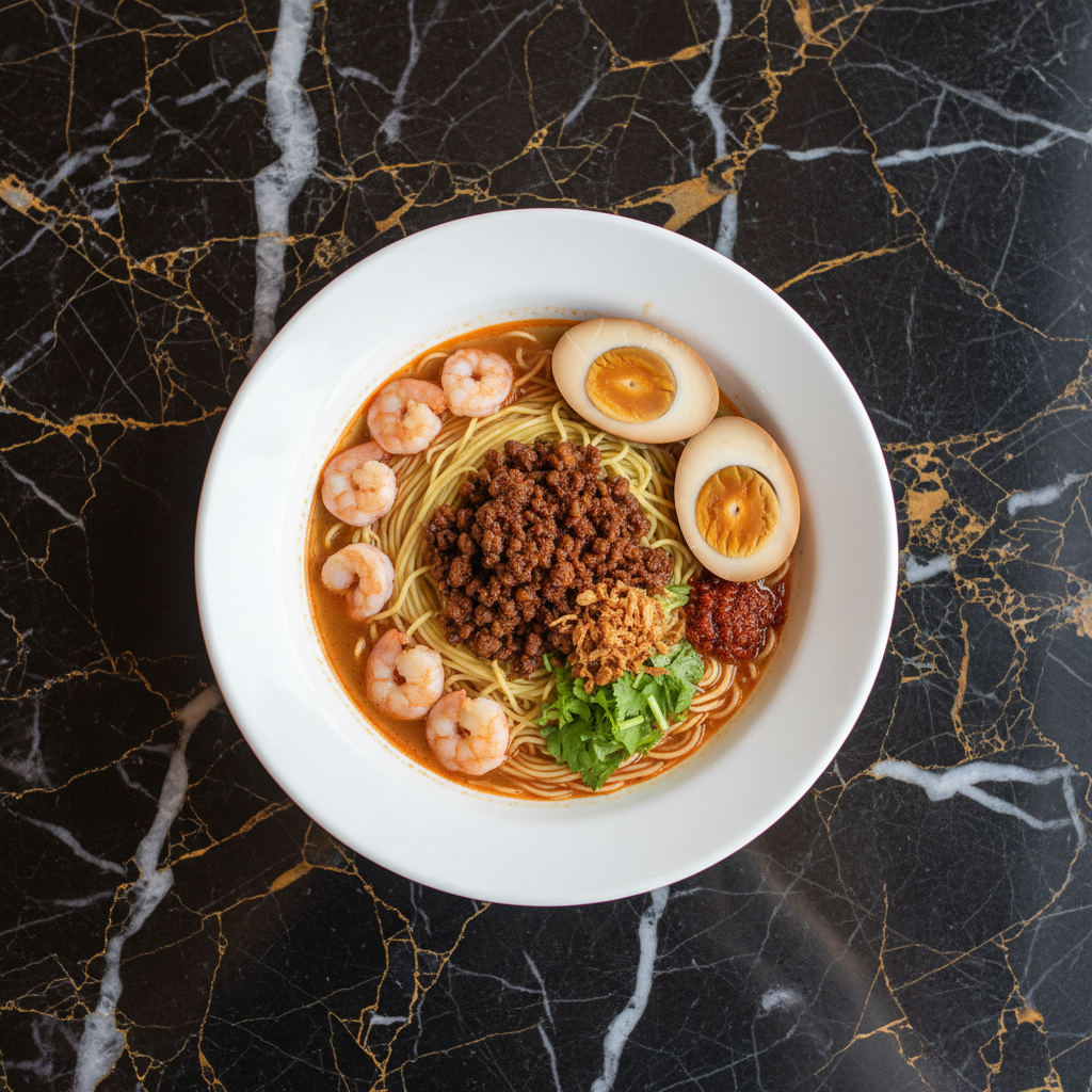 Danzai noodles, originating from Tainan, Taiwan, is a flavorful noodle soup featuring a savory ground pork mixture and a rich broth, often made with shrimp shells for depth. It's a beloved street food known for its comforting taste and satisfying texture.