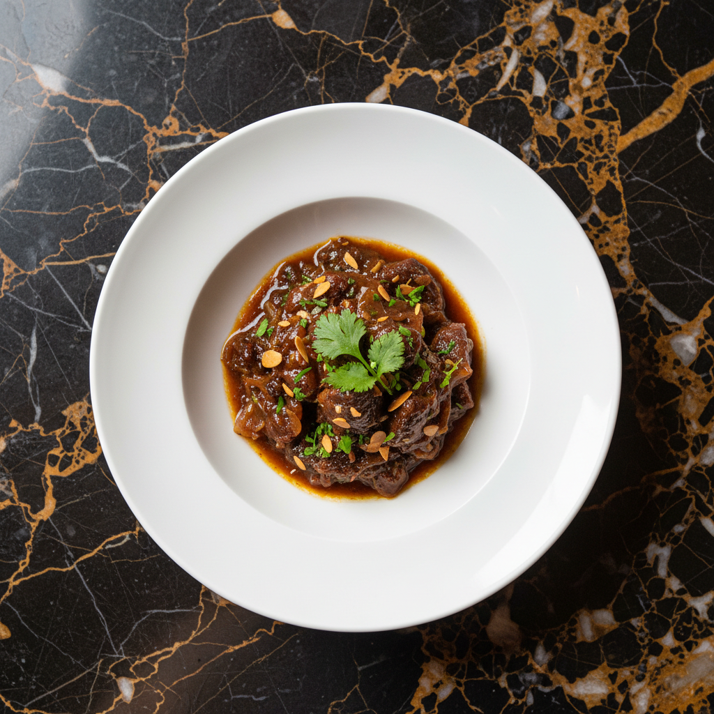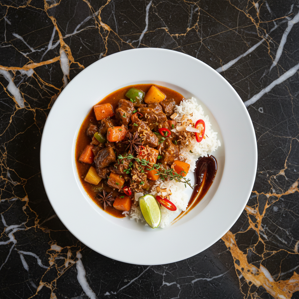 A classic Cape Malay dish featuring tender lamb shoulder braised in a rich, sweet-sour sauce infused with tamarind, caramelized onions, and aromatic spices. This slow-cooked stew is known for its complex flavor profile and is often even better the next day.