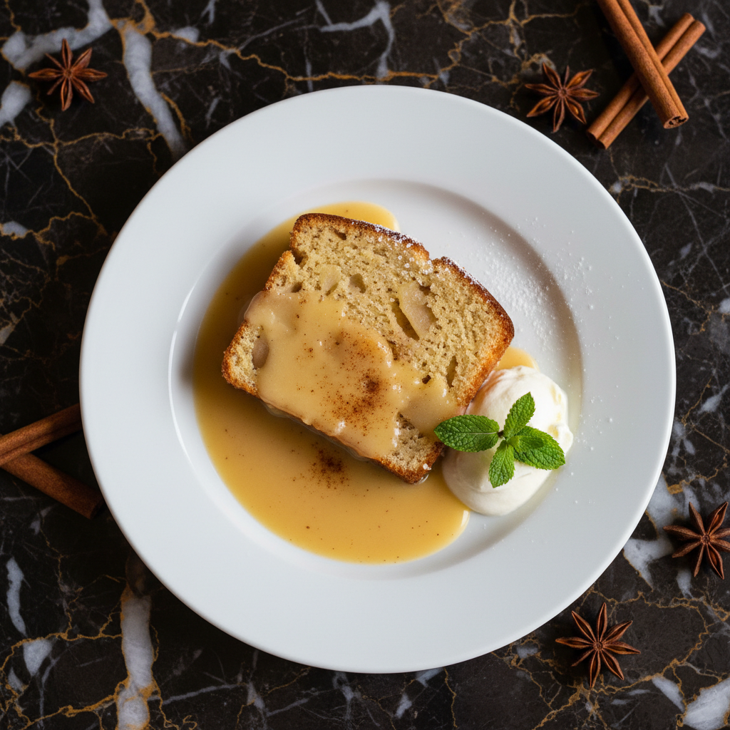 A delightful steamed pudding originating from Devon, this dish features a light, fluffy sponge cake infused with the subtle sweetness of apple and the warming spice of cinnamon. Often served with custard or cream, it's a comforting and traditional dessert.