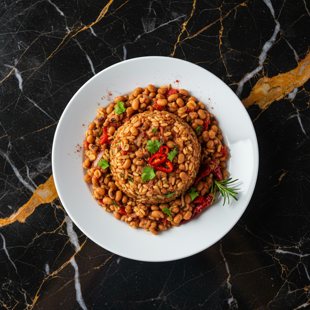 Dikgobe is a traditional Botswanan dish made from a combination of beans (often black-eyed peas or cowpeas) and samp (dried, crushed maize kernels), cooked together. It's a hearty and nutritious meal, often seasoned with onions, tomatoes, and spices. Dikgobe is commonly served at celebrations and gatherings, and can be eaten as a main dish or a side.