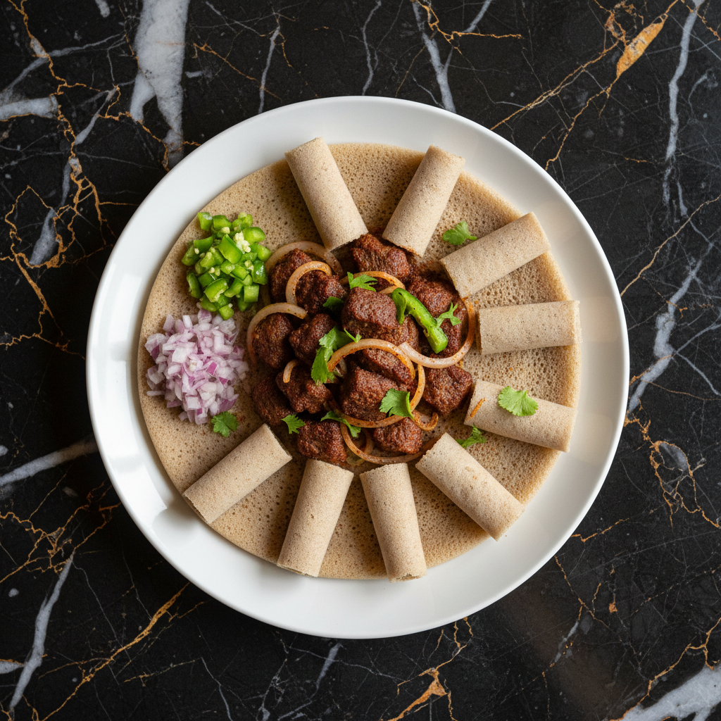 Derek Tibs are a dry-fried Ethiopian meat dish, characterized by its crispy texture and intense flavor, achieved without a sauce. It's a simpler, more intensely browned version of classic tibs.