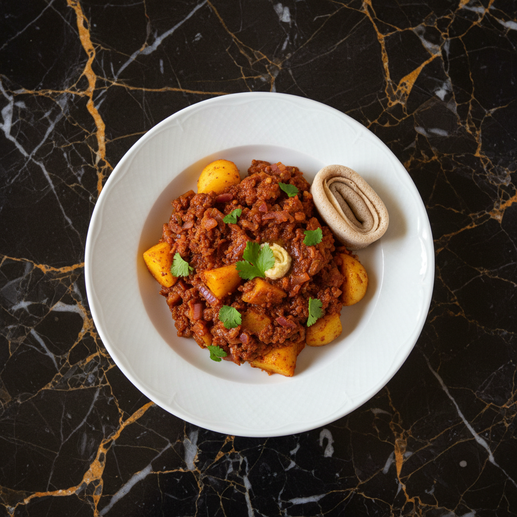 A comforting and flavorful Ethiopian stew featuring tender potatoes simmered in a rich, spicy berbere sauce with sautรฉed onions and garlic. Traditionally served during fasting periods, this dish is both satisfying and warming.