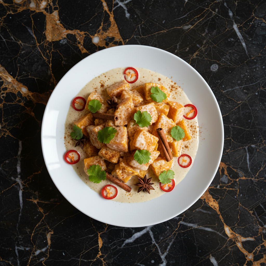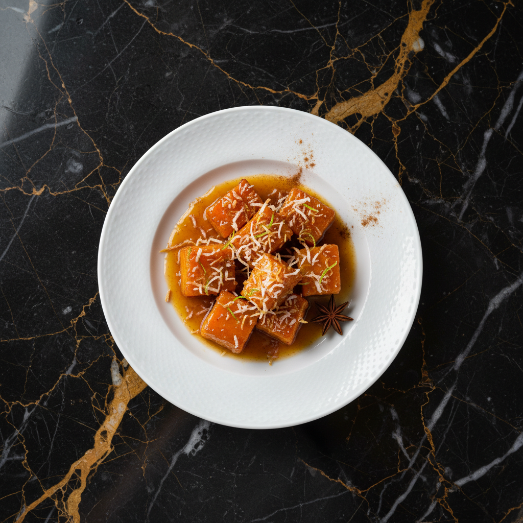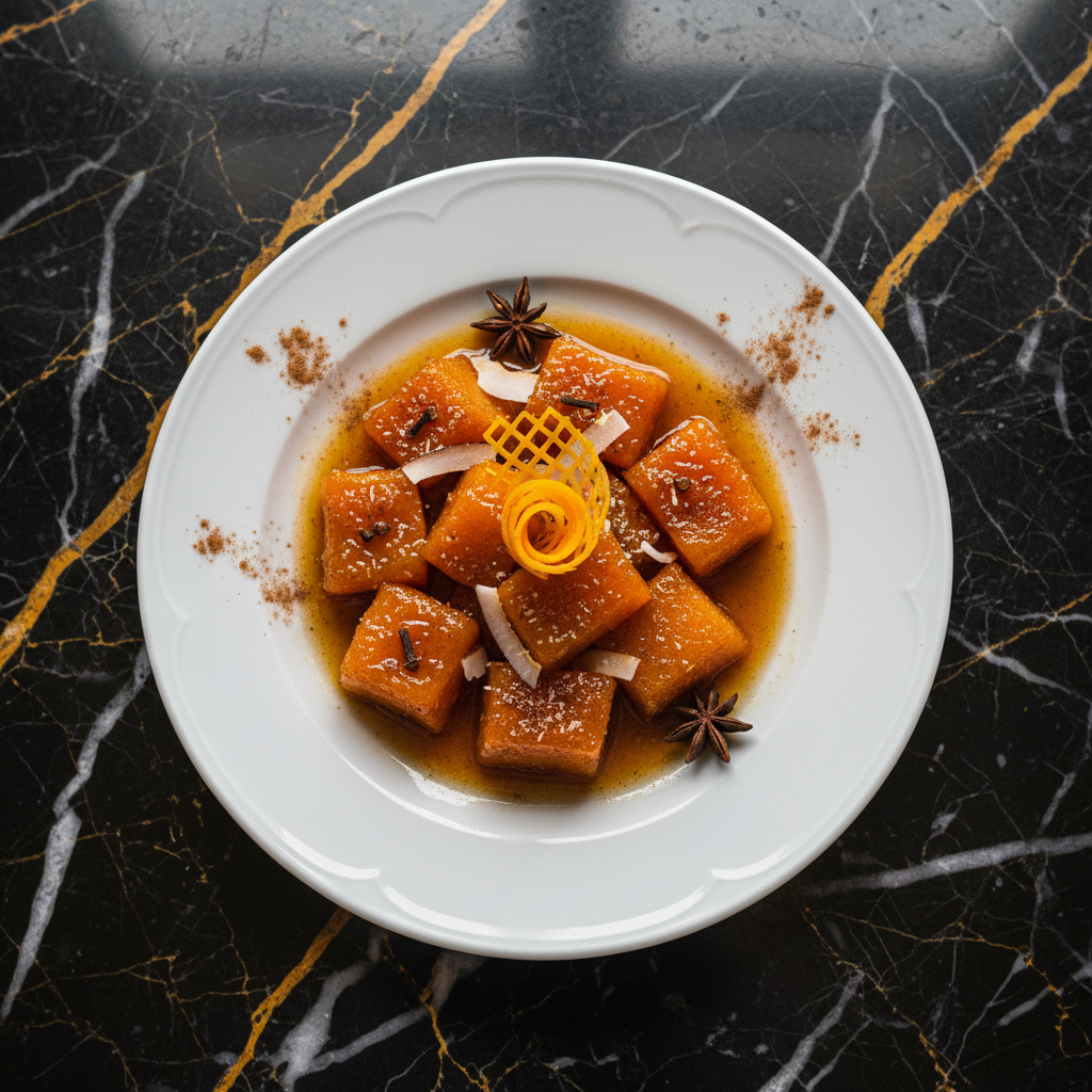 A simple yet delightful Cape Verdean dessert featuring sweet potatoes simmered in a rich coconut milk and caramel sauce. This dish is tropical, comforting, and showcases the natural sweetness of the ingredients.