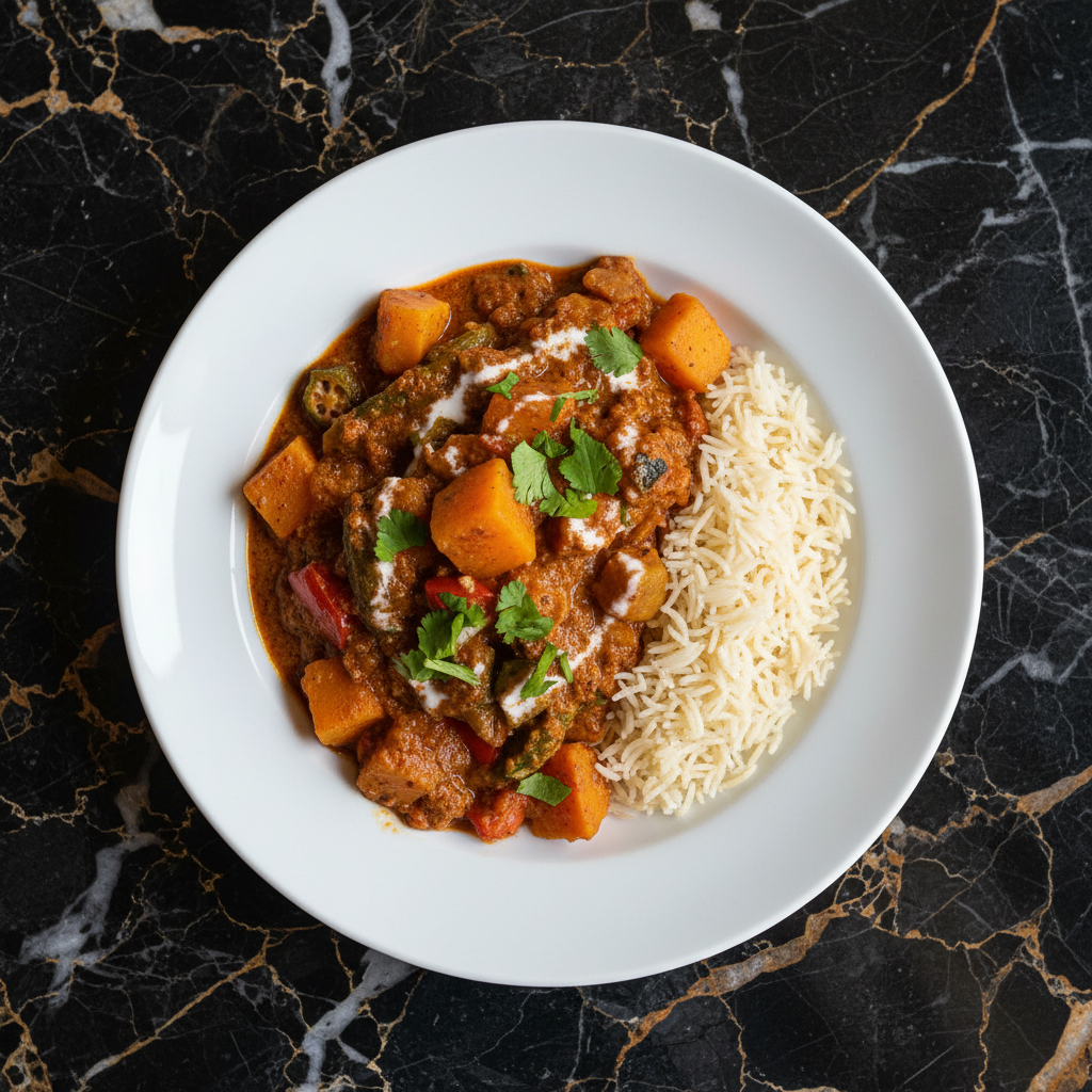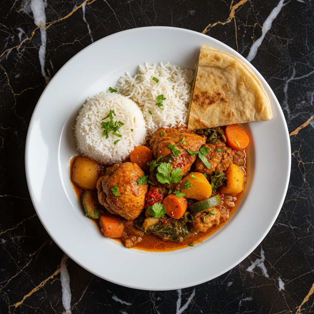A flavorful and aromatic vegetable curry inspired by Djiboutian cuisine, featuring a blend of warming spices, tender vegetables, and a rich, savory sauce. This dish showcases the influence of Middle Eastern and Indian culinary traditions on Djibouti's food.