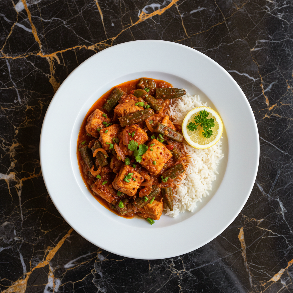 A flavorful and aromatic stew featuring tender pieces of fish cooked with okra, tomatoes, and a blend of East African spices.