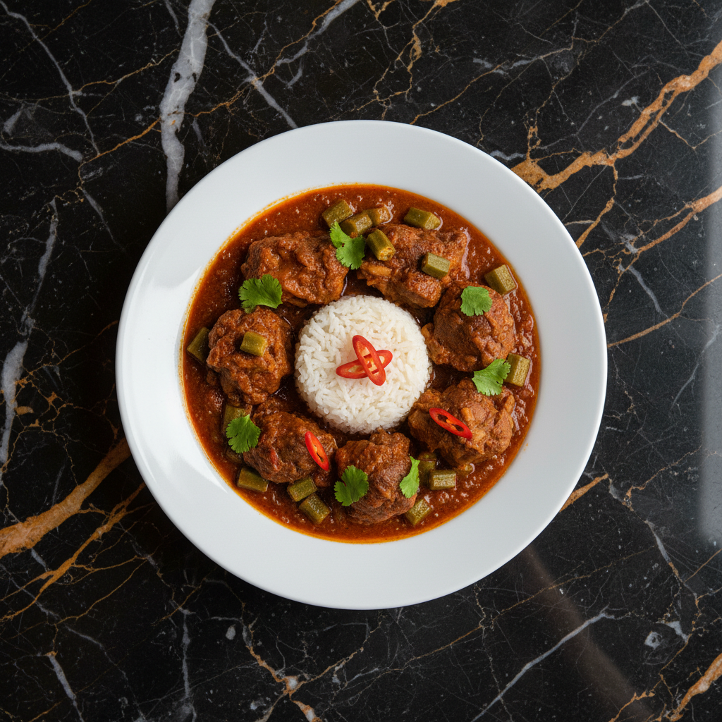 A hearty and flavorful stew featuring tender lamb and okra simmered in a rich tomato-based sauce. This dish showcases the influence of Middle Eastern and North African cuisines on Djiboutian food, with aromatic spices and a comforting texture.
