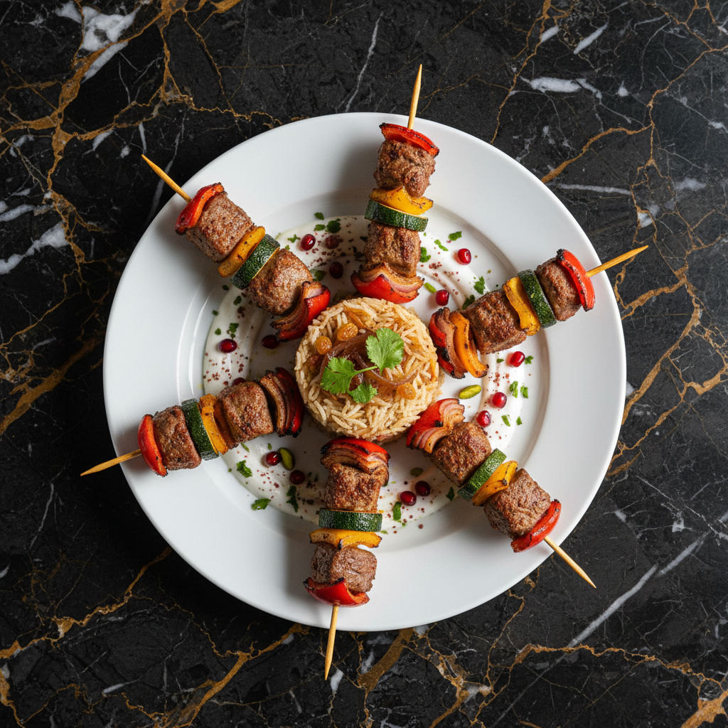 Tender cubes of lamb marinated in a flavorful yogurt-based sauce with aromatic spices, then grilled on skewers with colorful vegetables. This dish is a popular choice for celebrations and gatherings.