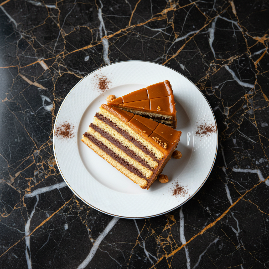 Dobos Torte, also known as Dobostorta, is a celebrated Hungarian confection consisting of multiple thin layers of sponge cake filled with rich chocolate buttercream and topped with a distinctive hard caramel glaze. Named after its creator, Jรณzsef C. Dobos, this iconic cake is a testament to Hungarian patisserie, often reserved for special occasions.