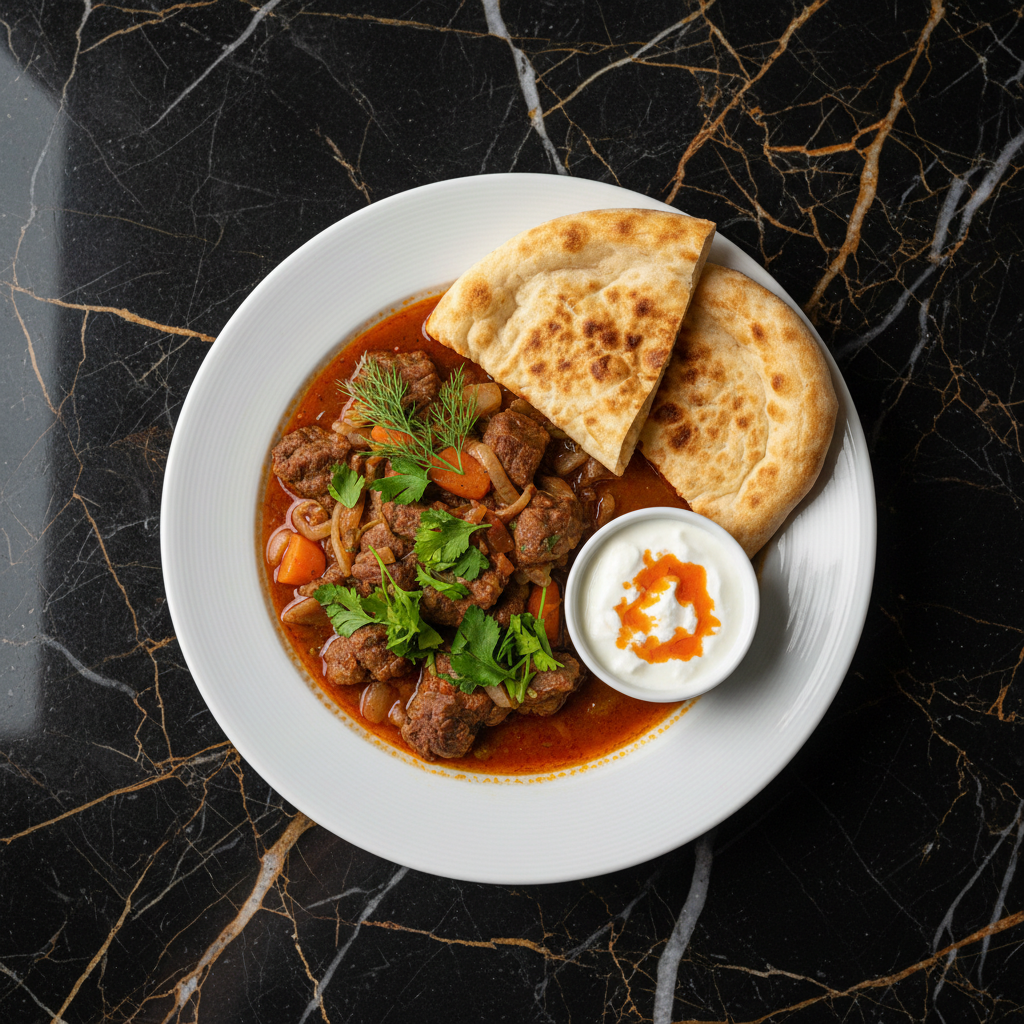 Dogroma Ash is a hearty and flavorful Turkmen dish, often prepared for special occasions. It features tender lamb or beef, simmered with aromatic vegetables and herbs, and traditionally served with flatbread.