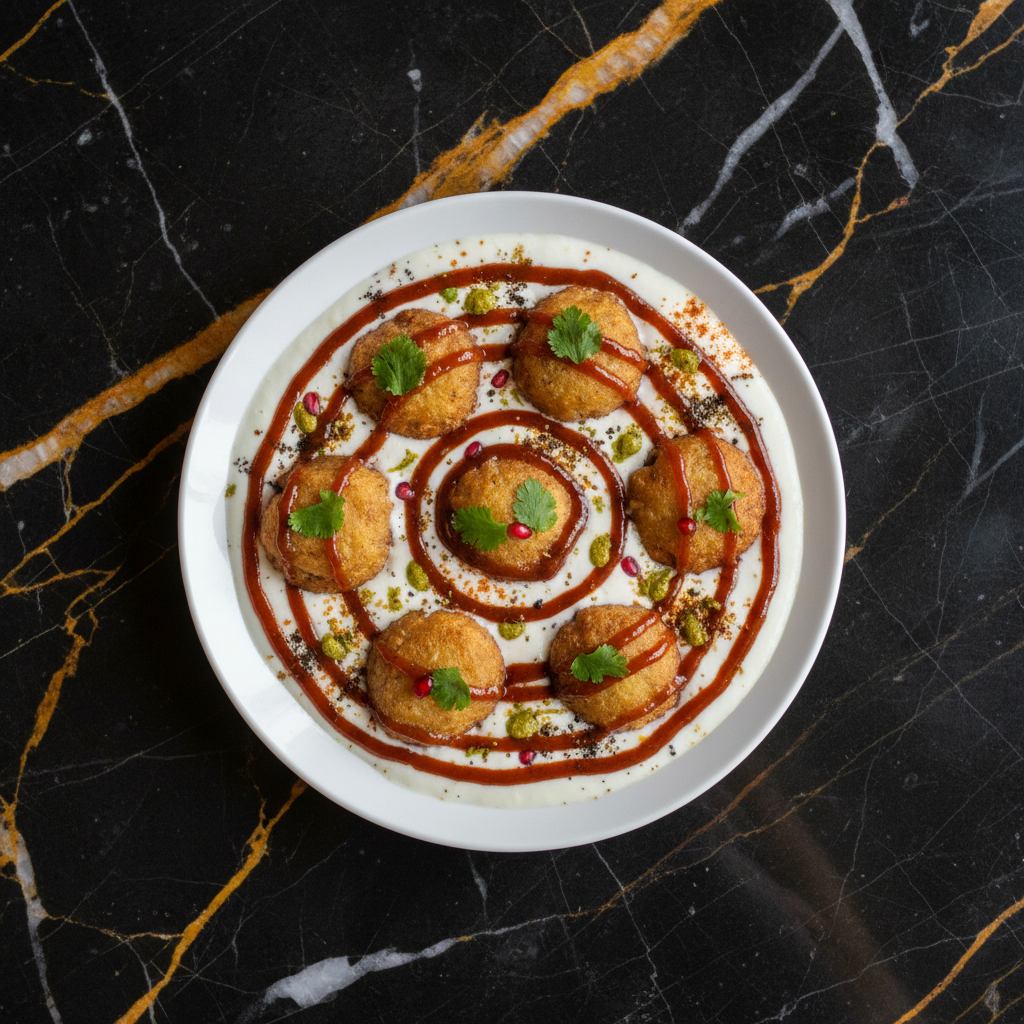 Doi Bora, also known as Dahi Vada, is a popular savory snack or appetizer in Bangladeshi cuisine. Soft lentil fritters (bora) are soaked in water and then generously coated with thick, seasoned yogurt, often topped with sweet and tangy tamarind chutney and a sprinkle of spices. It's a delightful balance of textures and flavors, offering a cooling and refreshing taste.