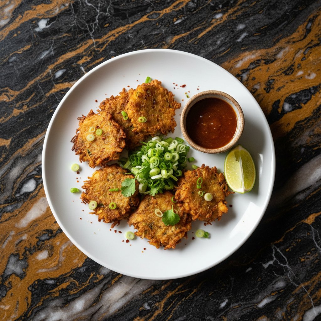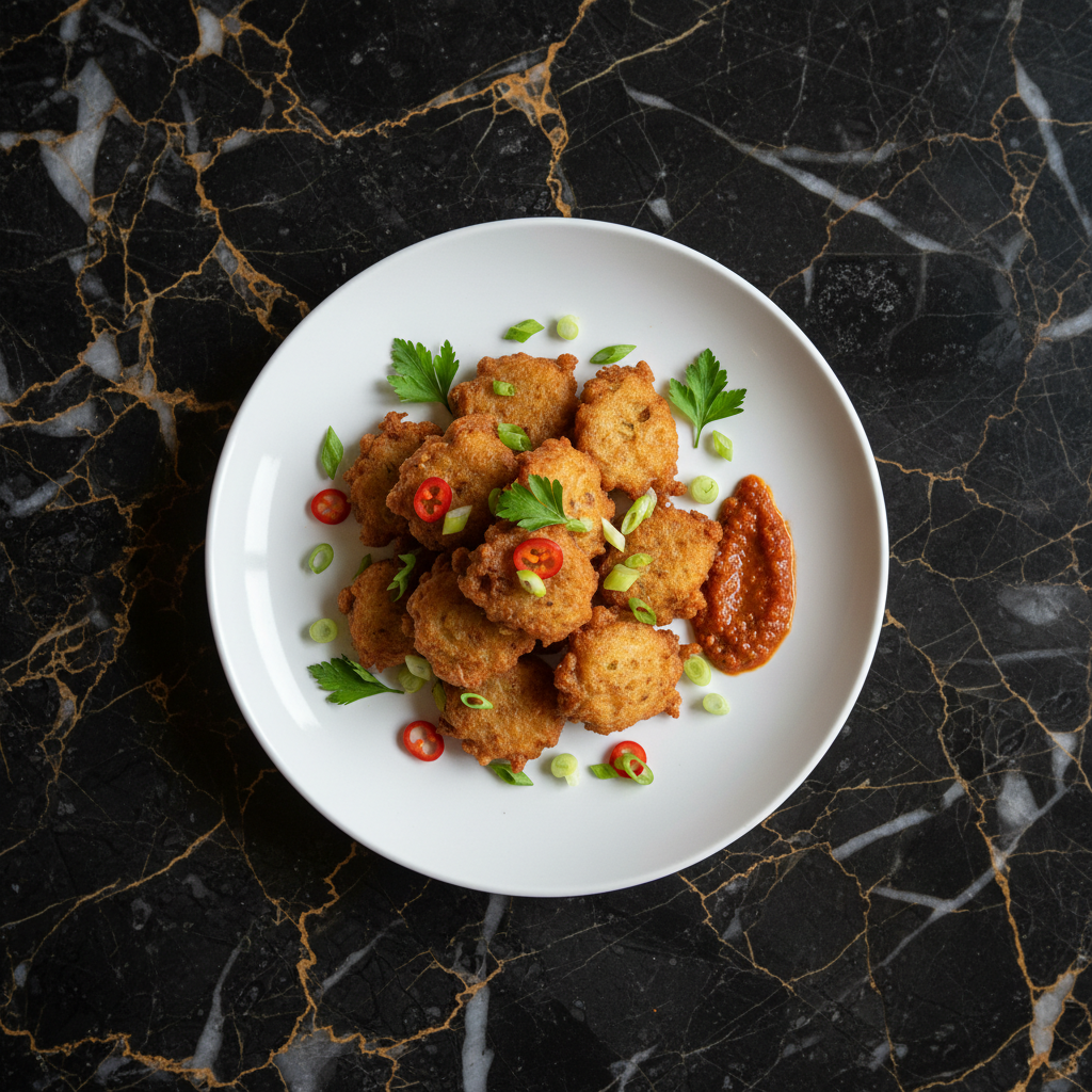 Savory fritters made from a medley of grated ground provisions like yams, dasheen, and sweet potatoes, seasoned and fried to a golden crisp. A popular snack or side dish.