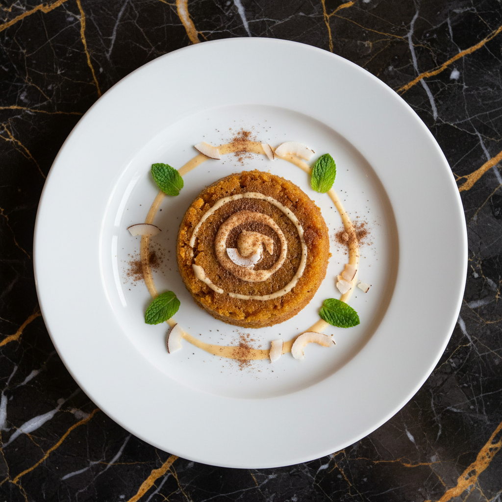 A comforting and subtly sweet dessert pudding made from mashed sweet potatoes, creamy coconut milk, and warming spices, often enjoyed as a treat or during special occasions.