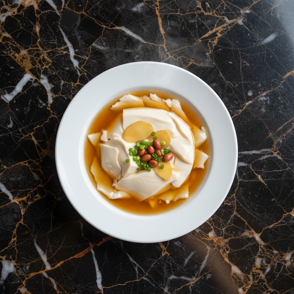 A delicate and comforting Chinese street snack, Dou Hua features incredibly silky smooth tofu served warm in a fragrant ginger-infused brown sugar syrup. Its gentle texture and subtly sweet flavor make it a perfect light dessert or snack.