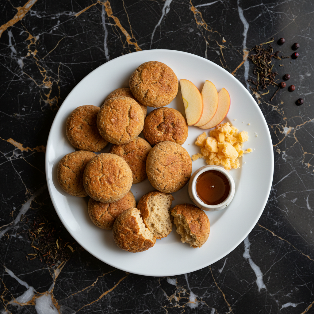 Dorset Knobs are very hard, spherical, twice-baked bread rolls from Dorset, traditionally made with bread dough, sugar, and butter. They are known for their long shelf life and unique texture, often enjoyed with cheese or dunked in tea.