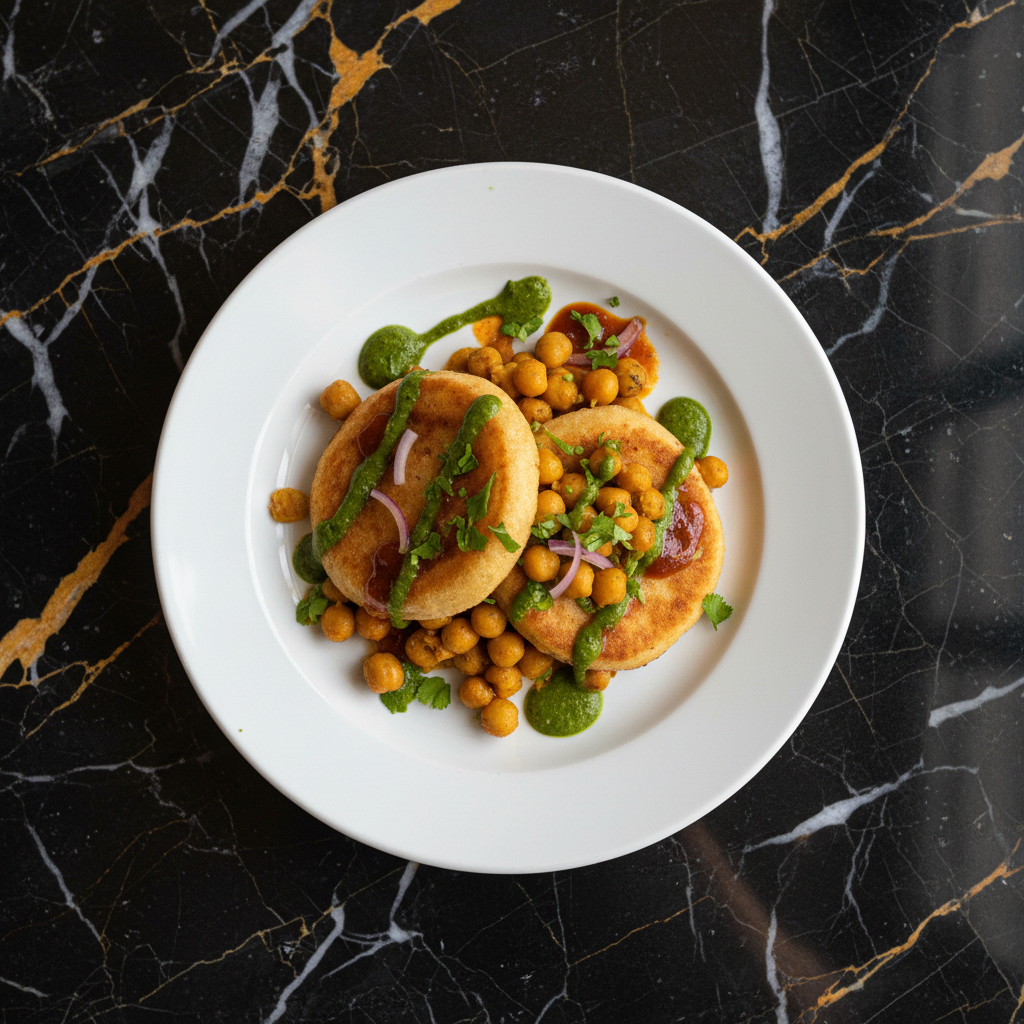 A popular street food in Trinidad and Tobago, Doubles consists of two pieces of fried flatbread (bara) filled with curried chickpeas (channa) and various chutneys and toppings.