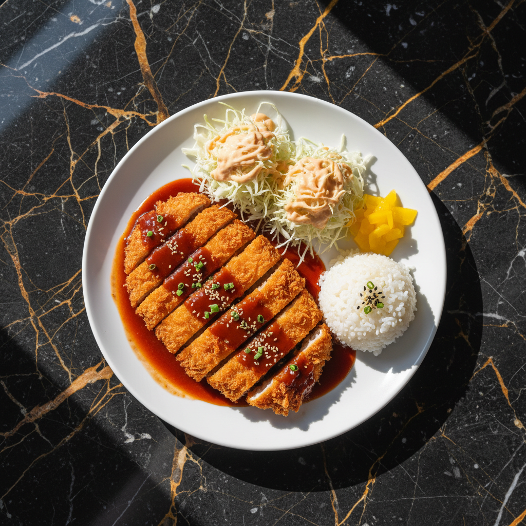 A popular Korean-Japanese fusion dish featuring crispy, golden-brown breaded pork cutlets served with a sweet and savory donkkaseu sauce and shredded cabbage. This is a beloved comfort food.