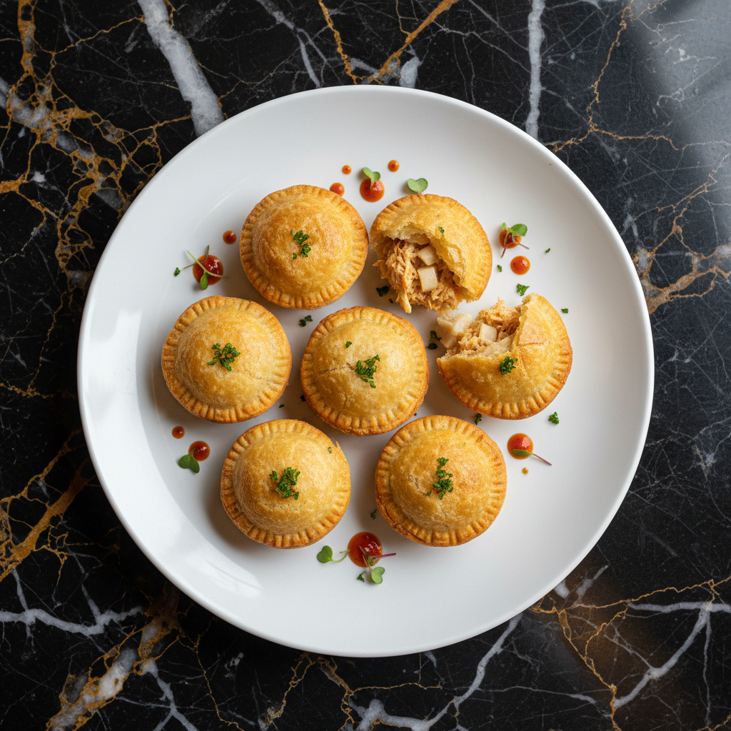 Empadinhas are beloved Brazilian mini pies, featuring a delicate, buttery shortcrust pastry filled with a savory shredded chicken and hearts of palm mixture.