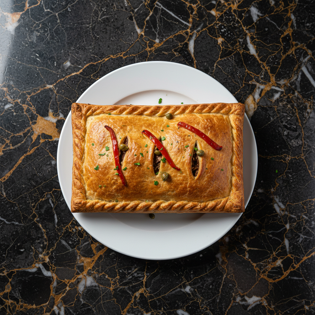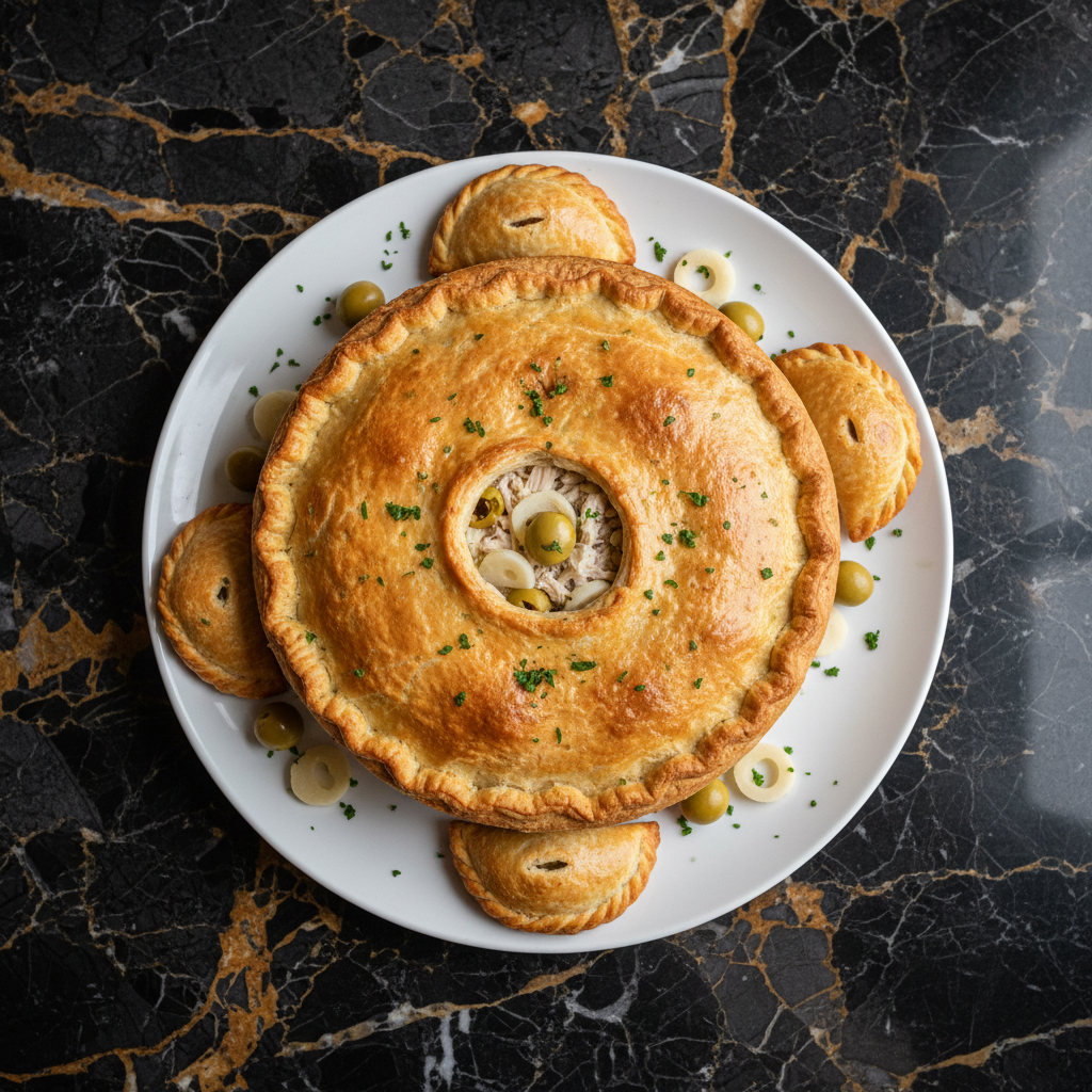 A hearty and flavorful Galician tuna pie, traditionally made for festivals and feasts. This large, savory pie is filled with tender tuna, sweet peppers, and onions, all encased in a golden, flaky pastry.