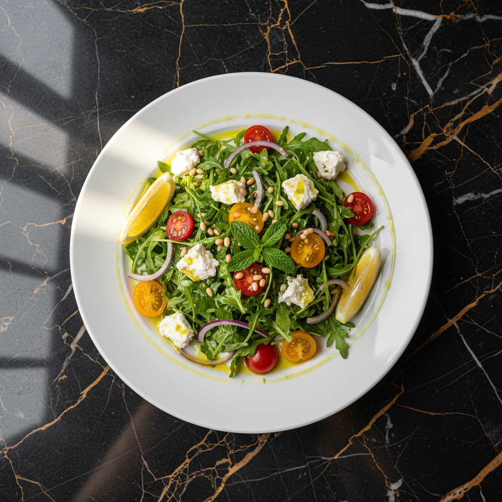 A vibrant and peppery Egyptian arugula salad with a zesty lemon-olive oil dressing. This salad is incredibly fresh, quick to prepare, and complements a wide variety of main dishes.