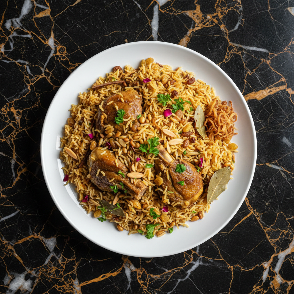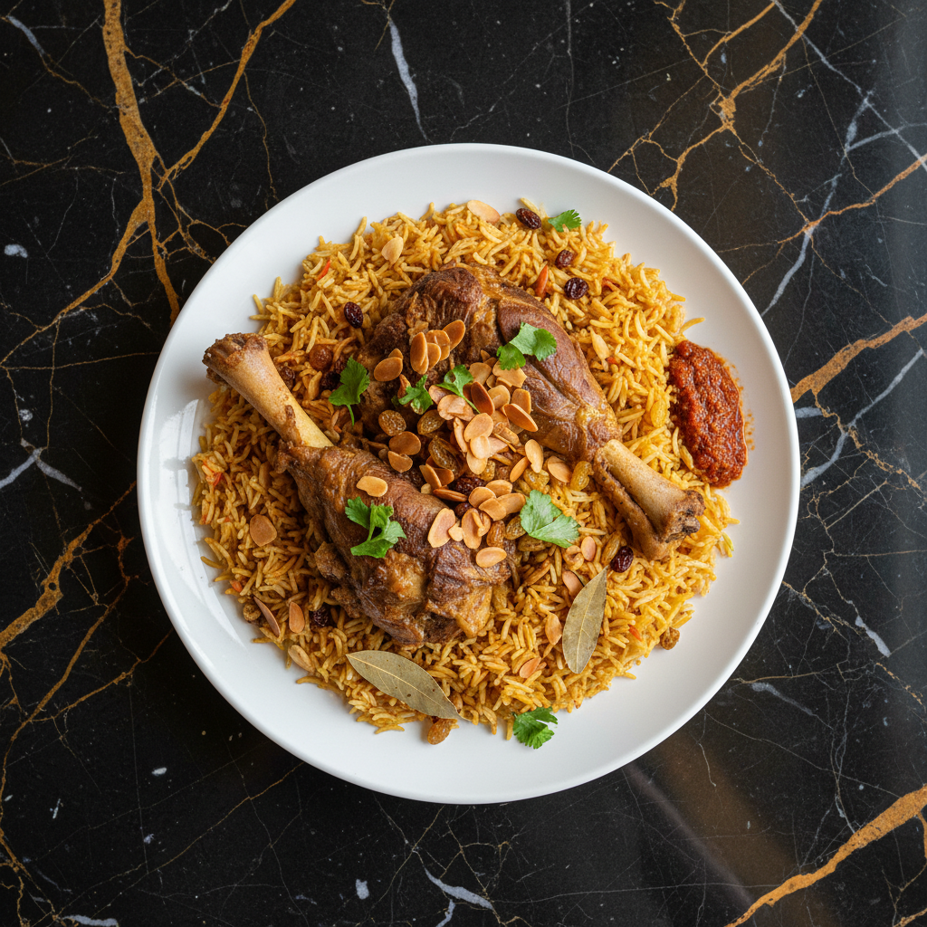 A traditional Emirati dish featuring slow-cooked camel meat, infused with aromatic spices, served over fragrant rice. Mandi is a celebratory dish often prepared for special occasions.
