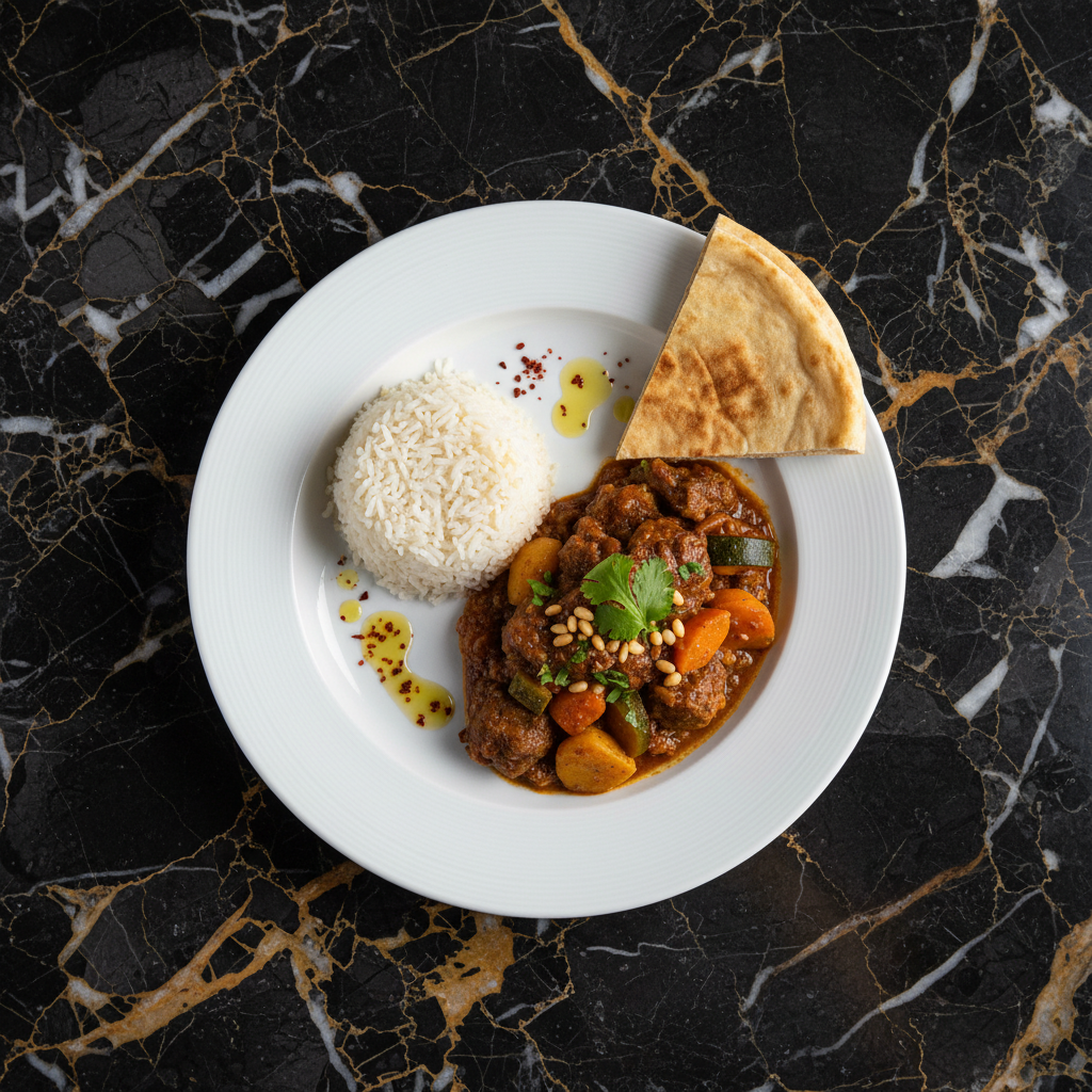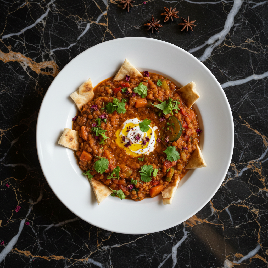 A hearty and flavorful vegetarian stew featuring red lentils simmered with a blend of aromatic Emirati spices, mixed vegetables, and a hint of tomato. It's a comforting and nutritious dish, perfect for a wholesome meal.