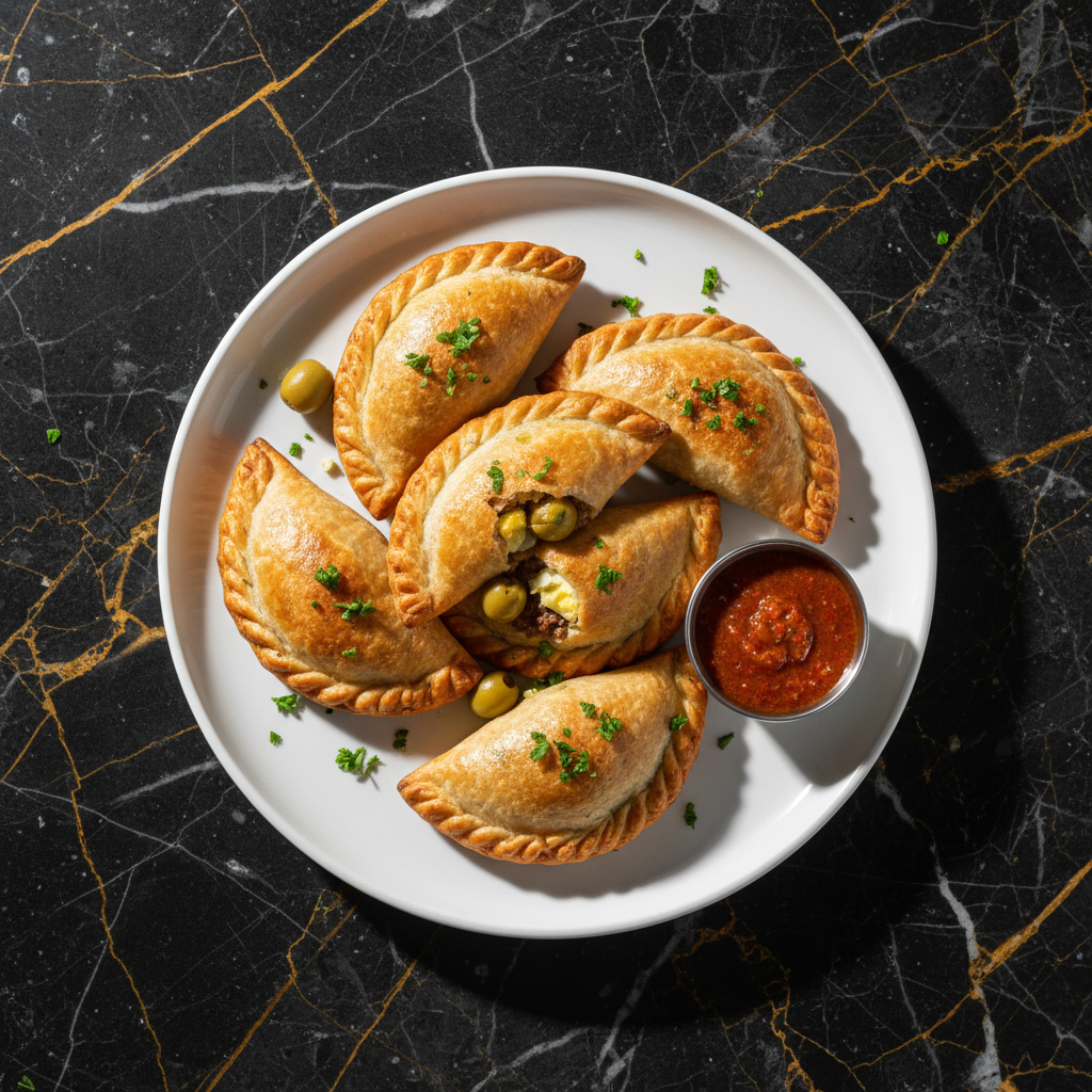 Argentina's beloved hand pies - flaky, golden-brown pastry filled with a savory, seasoned ground beef mixture, punctuated by the briny pop of olives and the richness of hard-boiled egg.