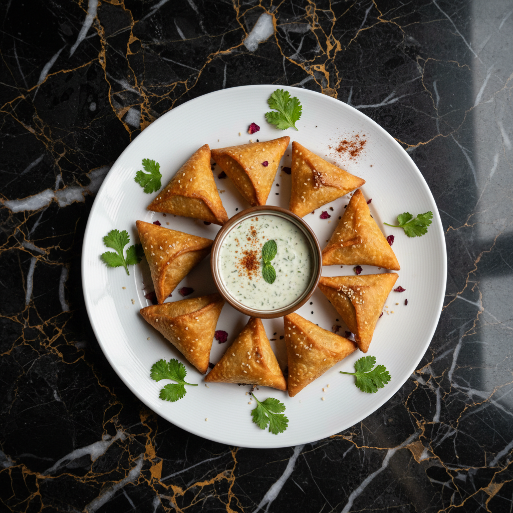 Crispy, golden samosas filled with a savory mixture of spiced minced chicken, onions, and herbs, a popular snack across the UAE.